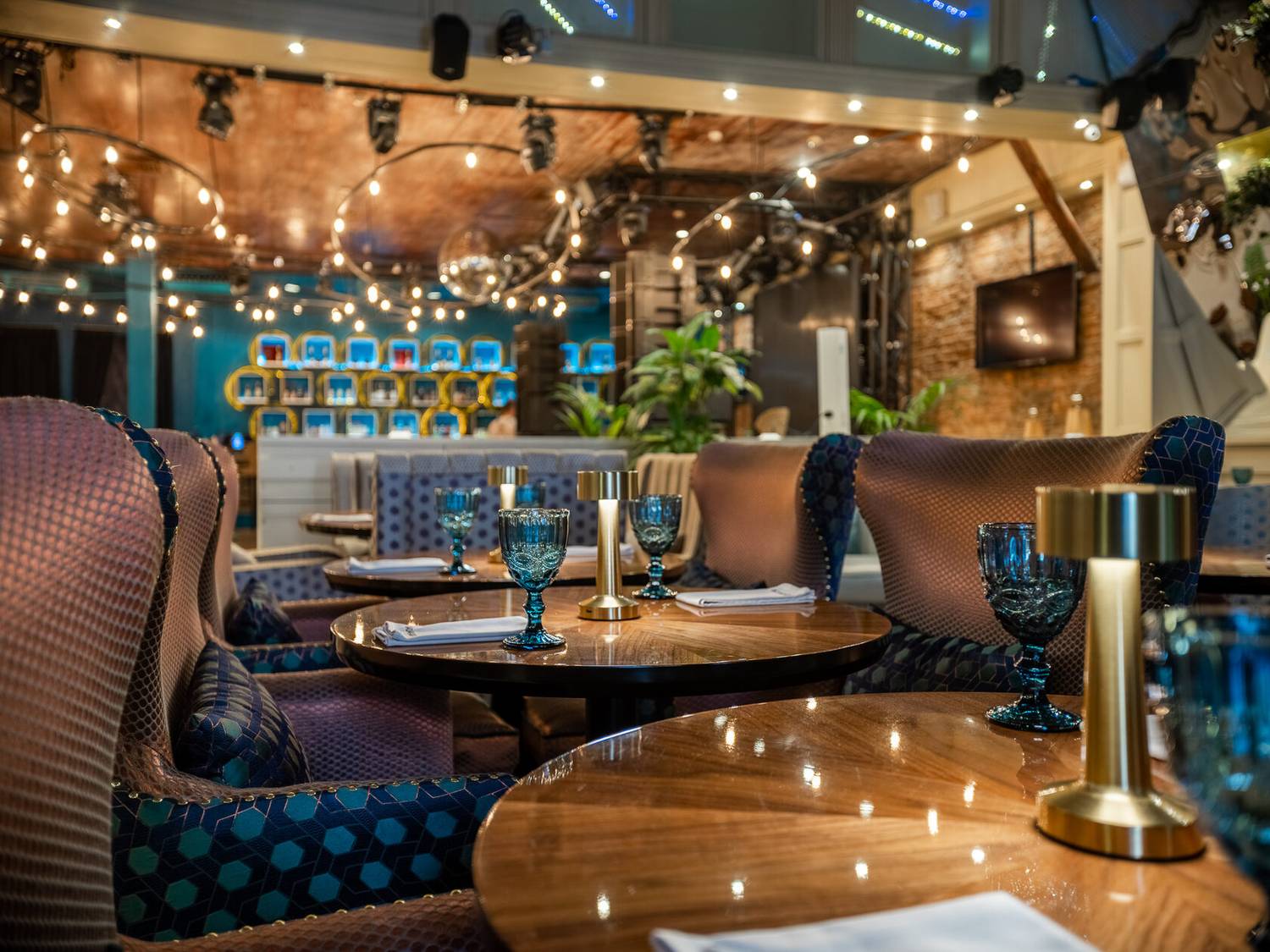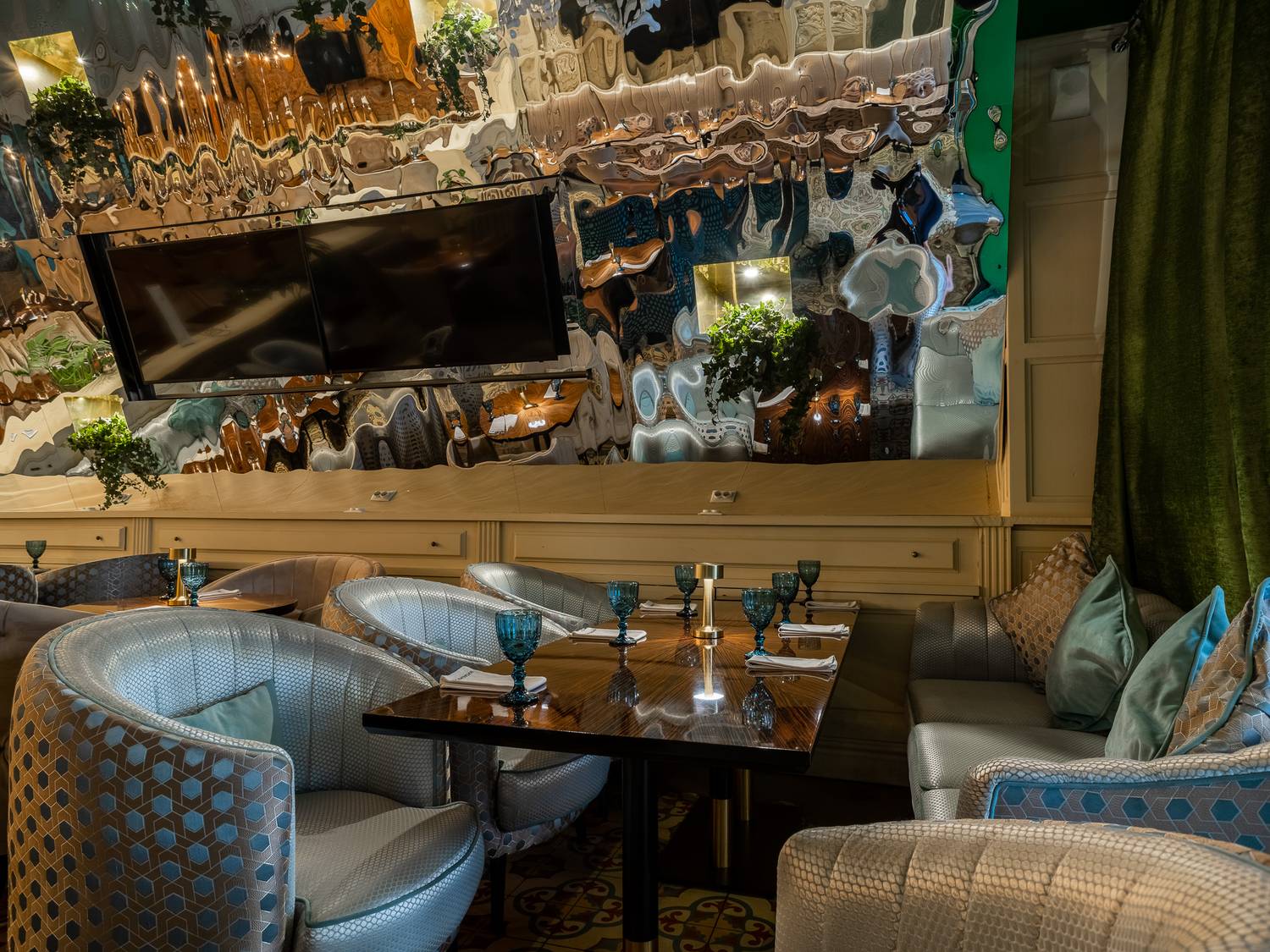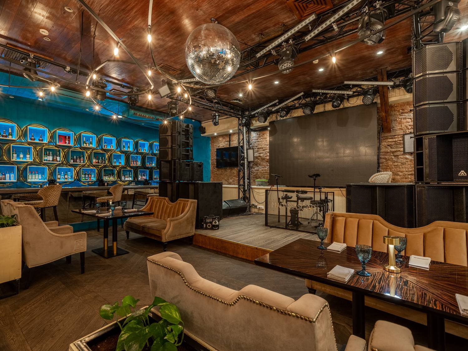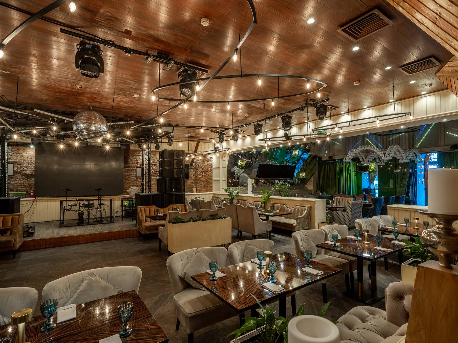 Атмосфера. Интерьер в эклектичном стиле на стыке восточных и западных мотивов: пол с орнаментом, барная стойка с рисунками цветов. Здесь регулярно выступают музыканты и проводят караоке-вечеринки. А также площадку часто арендуют под проведение показов мод, бизнес-конференций и презентаций.