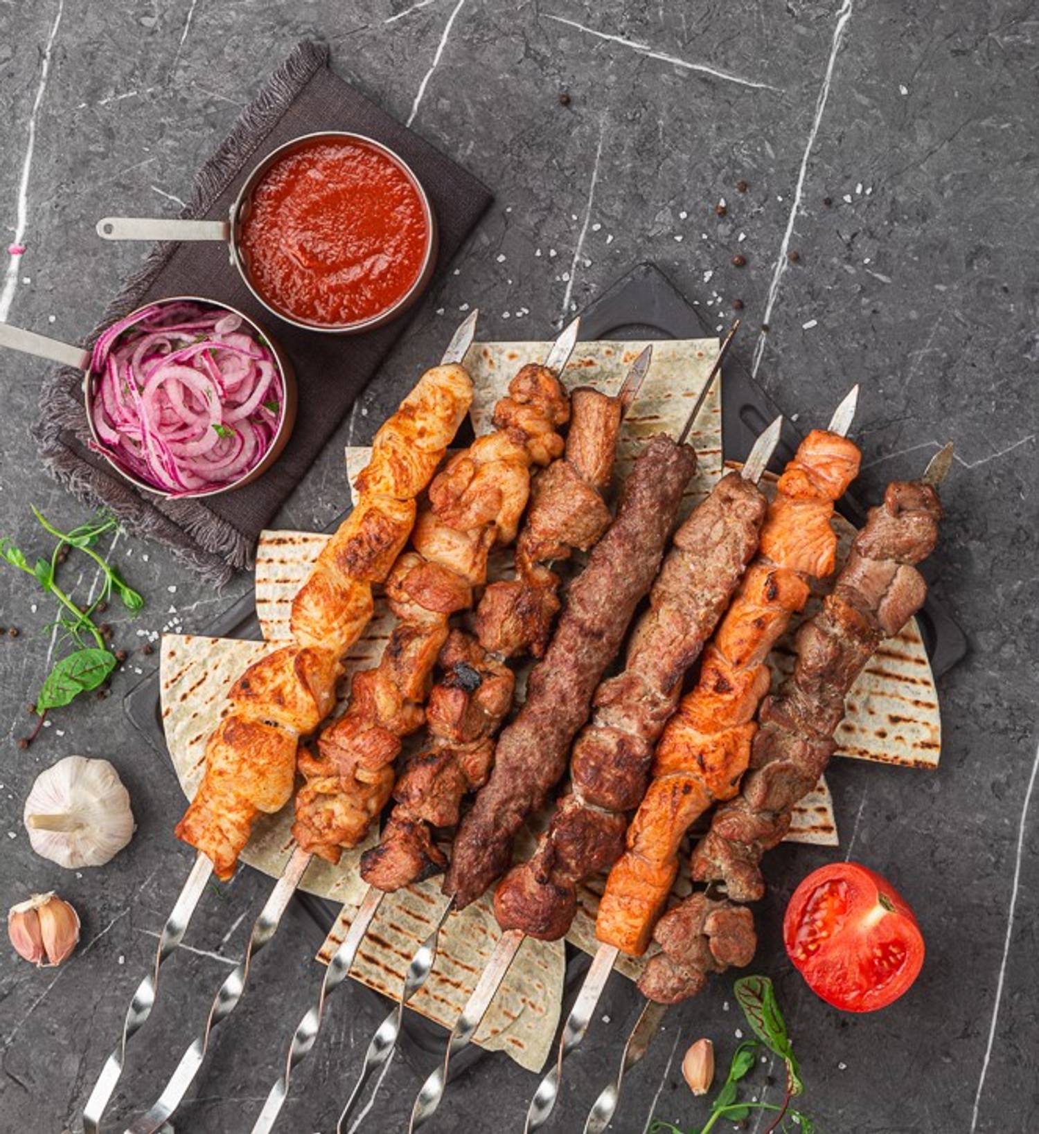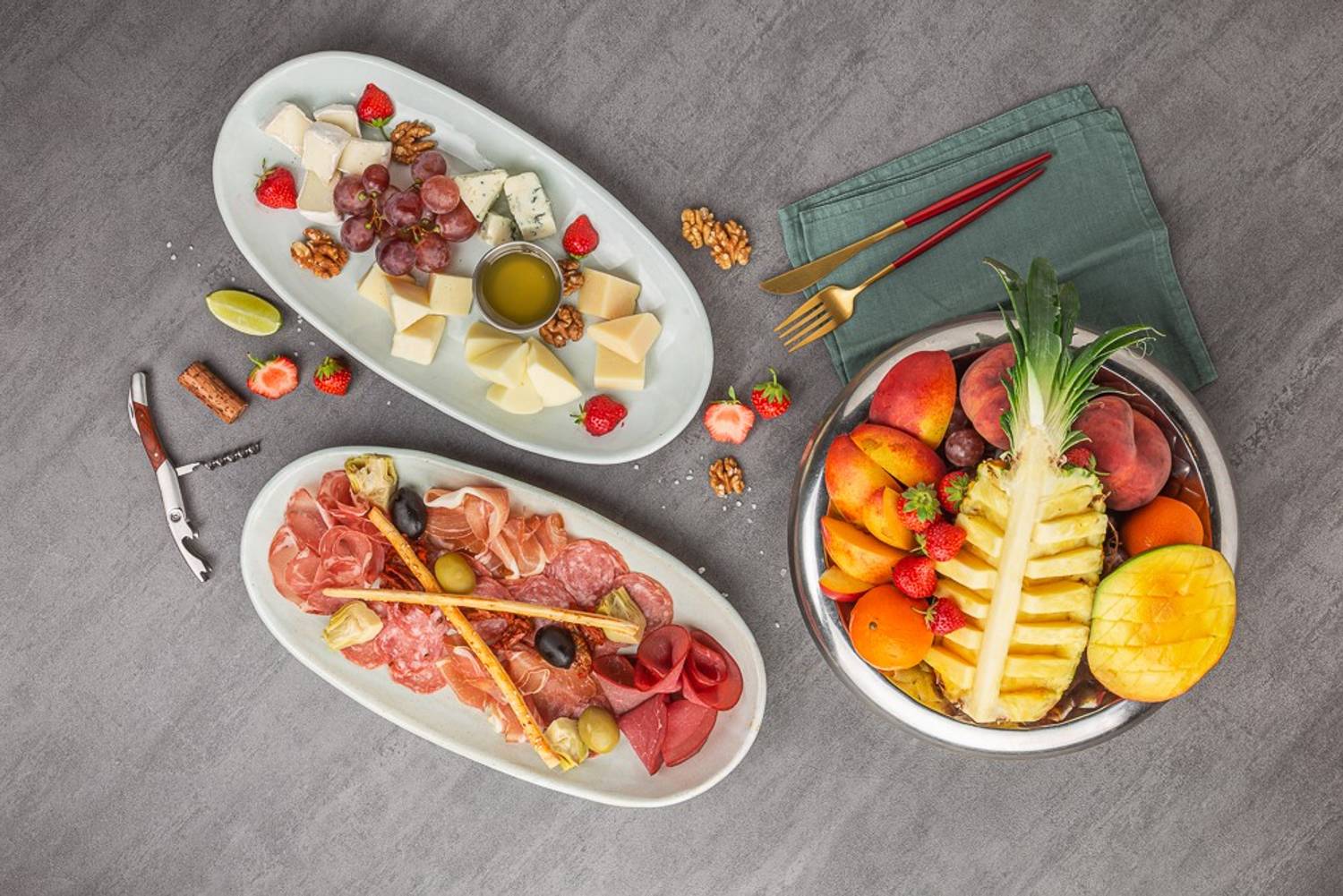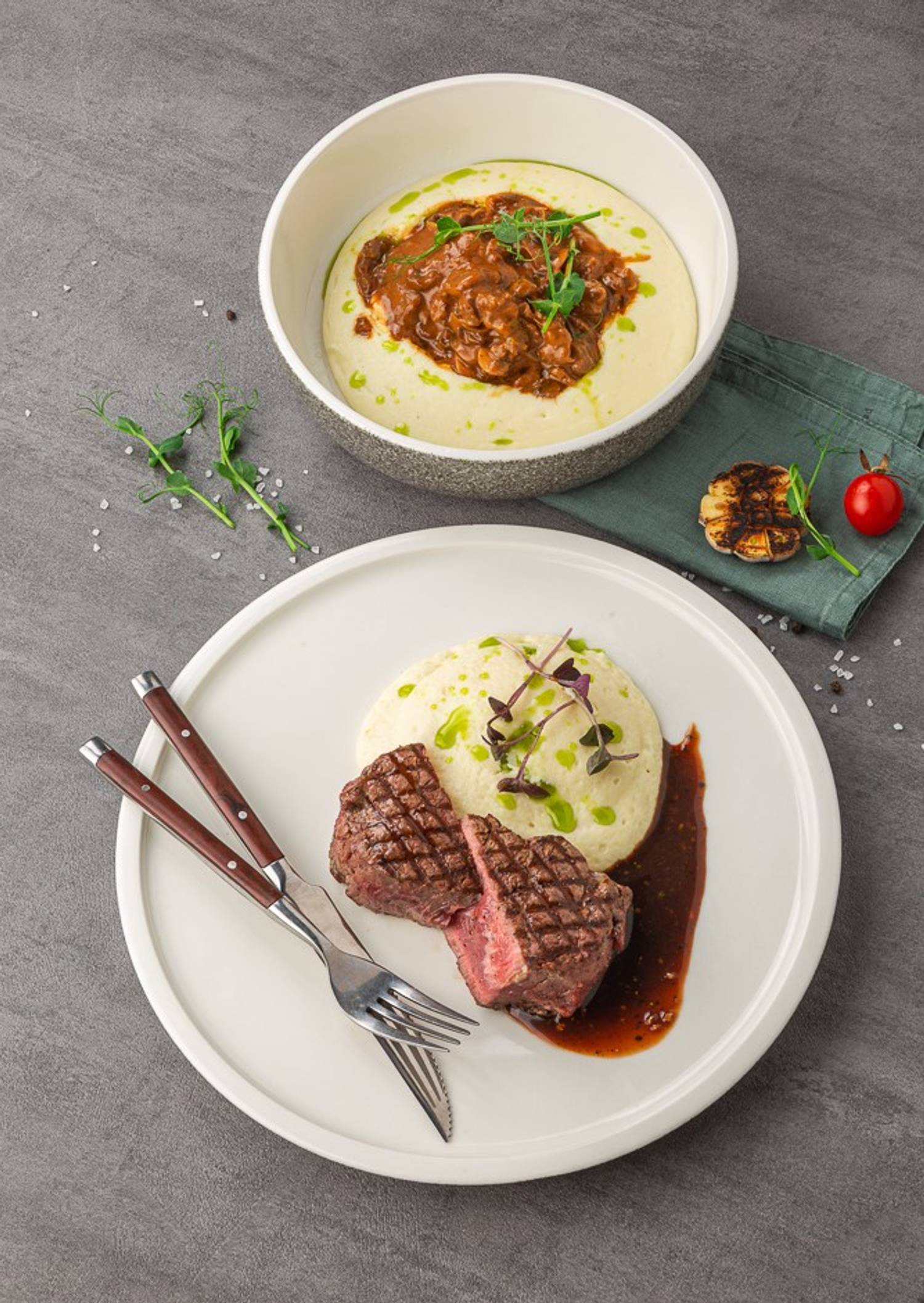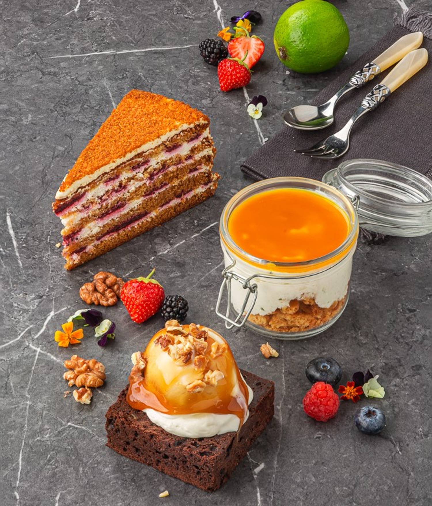 Еда и напитки. В меню — раздел с блюдами по 350 рублей: неро-венеро с моредпродуктами, соте из мидий, паста чикен песто, пицца мясной микс и фланк с пюре из сельдерея и соусом малина и даже десерт горячий шоколадный торт. На обед готовят ролл мидии со сливочным сыром, сувлаки с курицей и шашлык из куриного бедра.