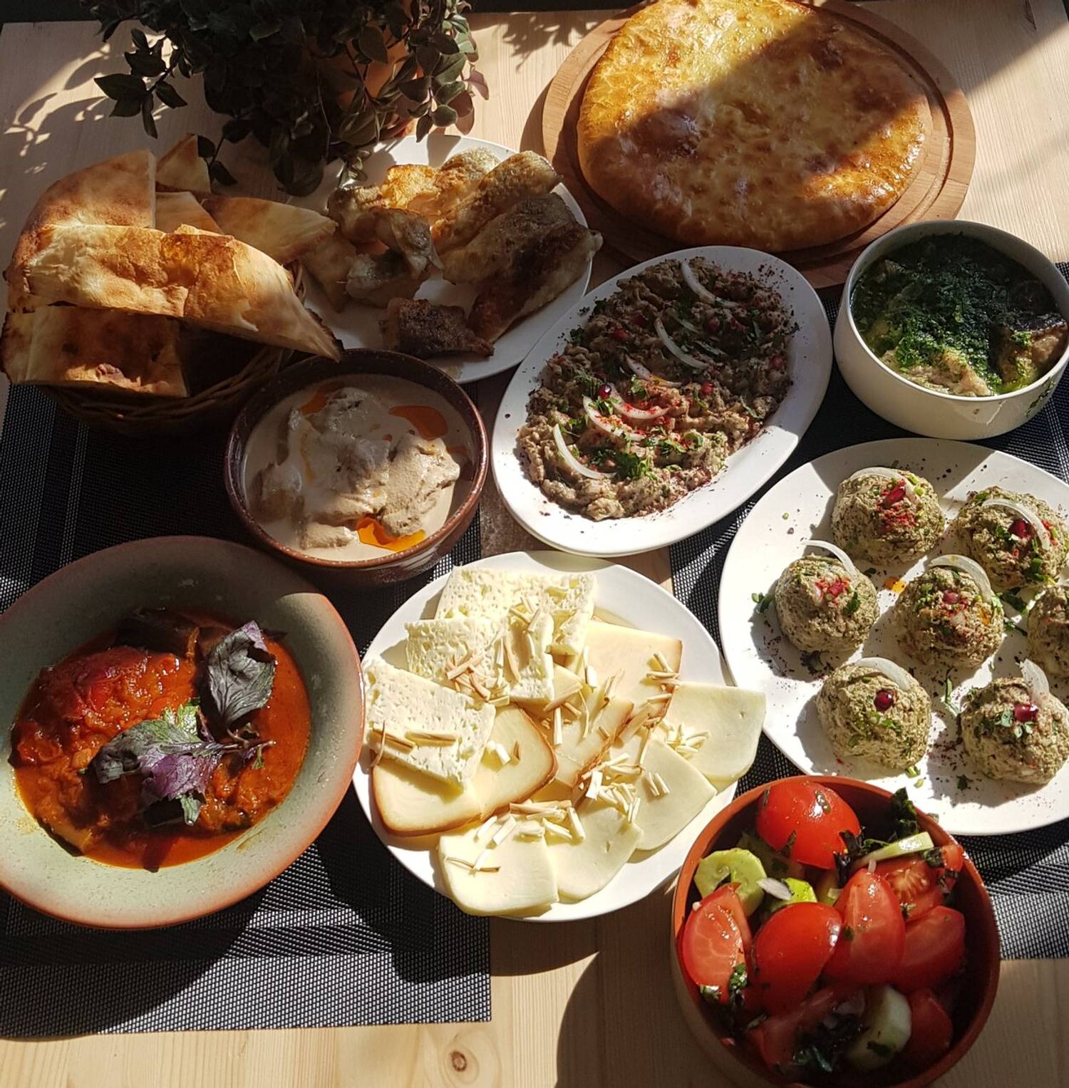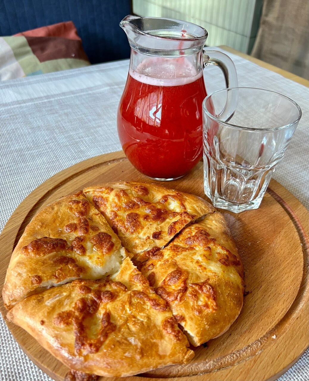 Еда и напитки. В меню — борано, хашлама, форель под белым соусом, кубдари с курицей и сулугуни, хачапури по-гурийски. Также можно заказать шашлык из свиной шеи, свинину на ребрах.