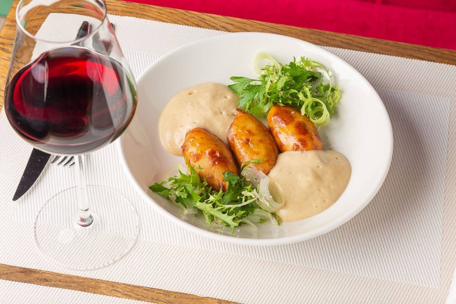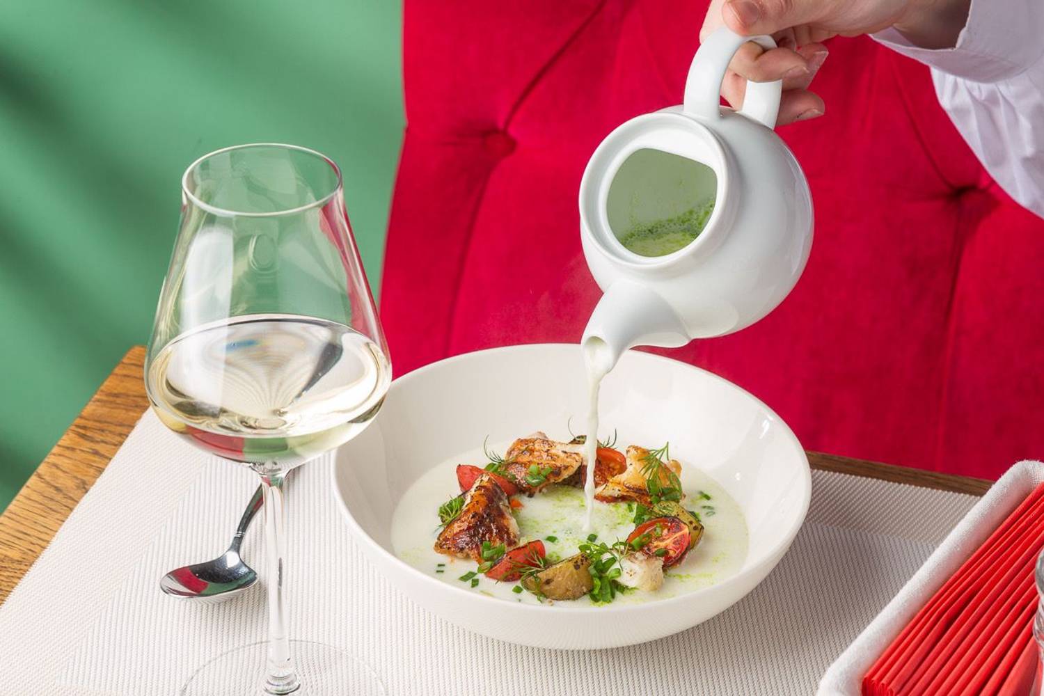 Еда и напитки. В меню — традиции северной столицы: вареники с подкопченной форелью и тунцом, пельмени с томленой уткой, шницель из индейки с муссом из пармезана и ладожский судак с запеченными овощами. На десерт можно выбрать клубничный сметанник и шоколадный бисквит с вишневым соусом.