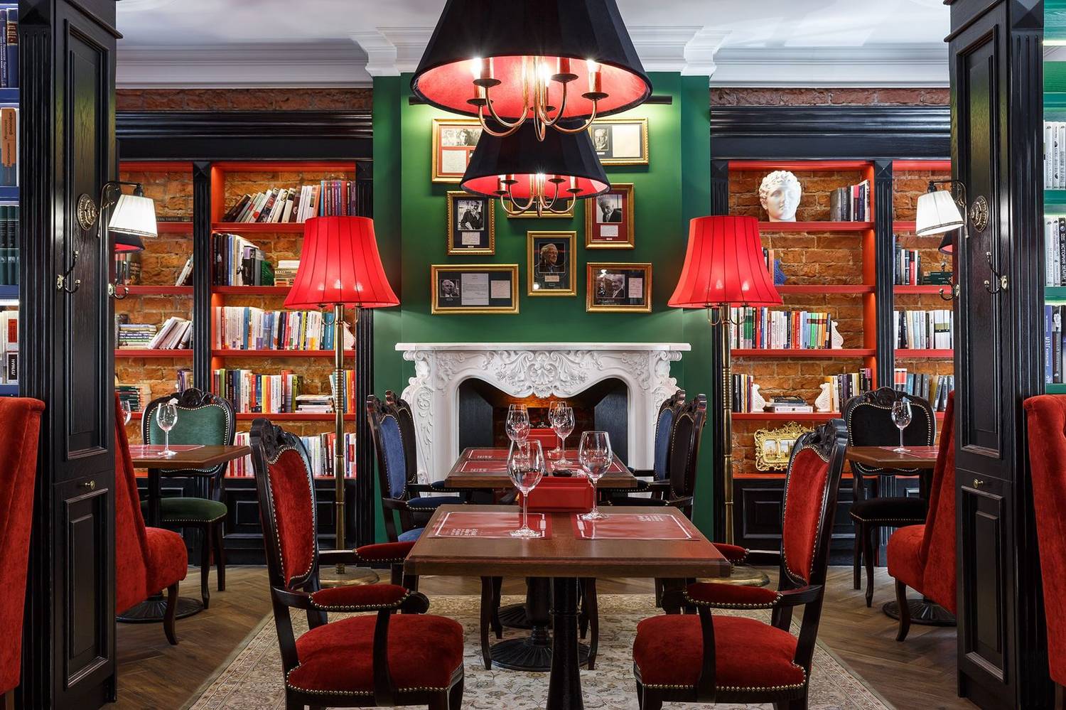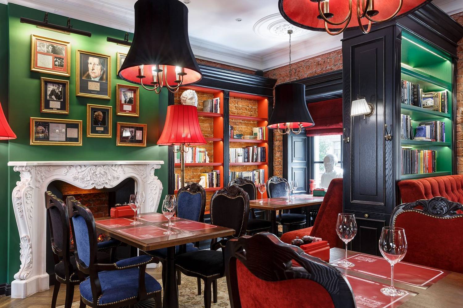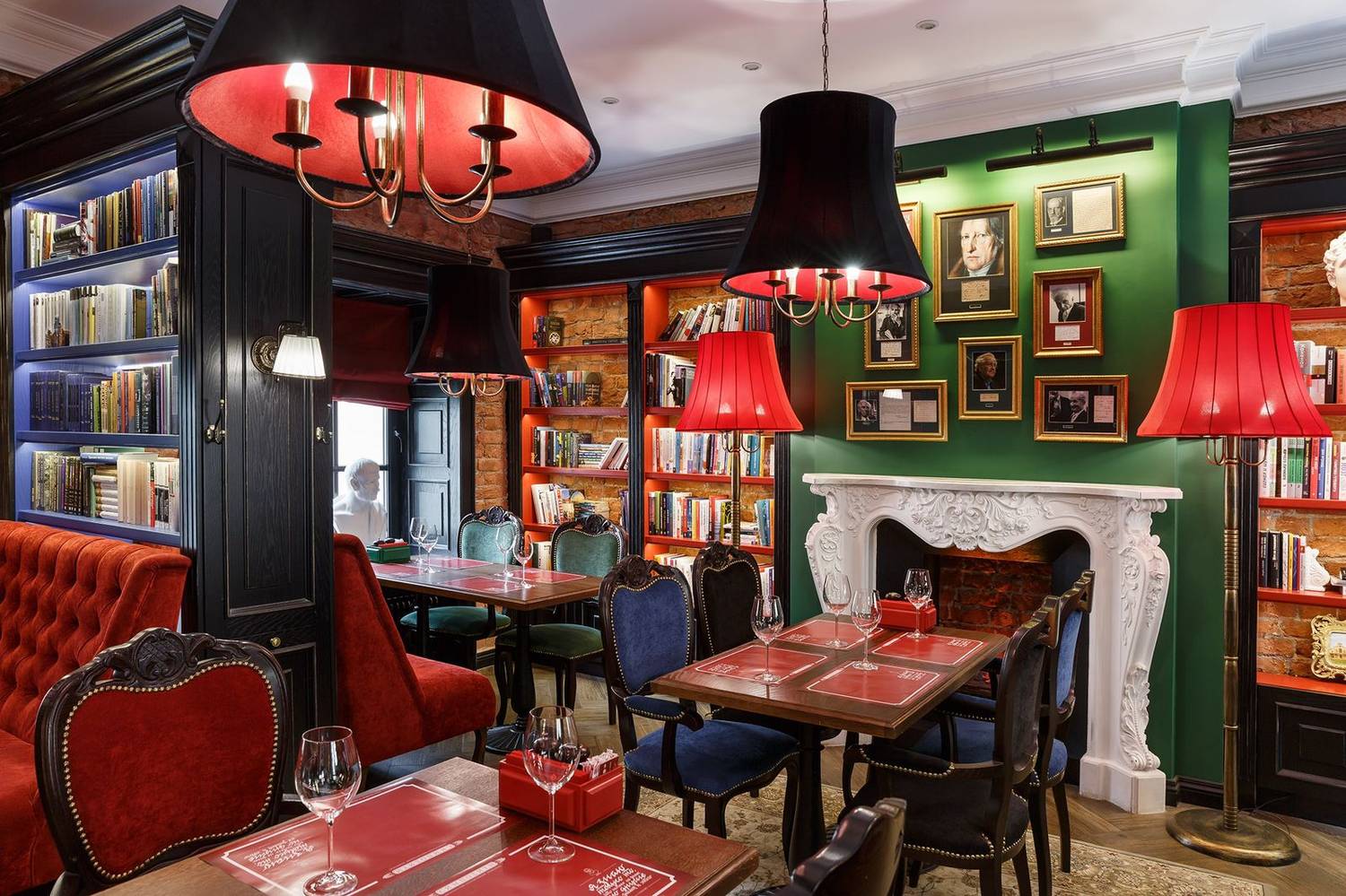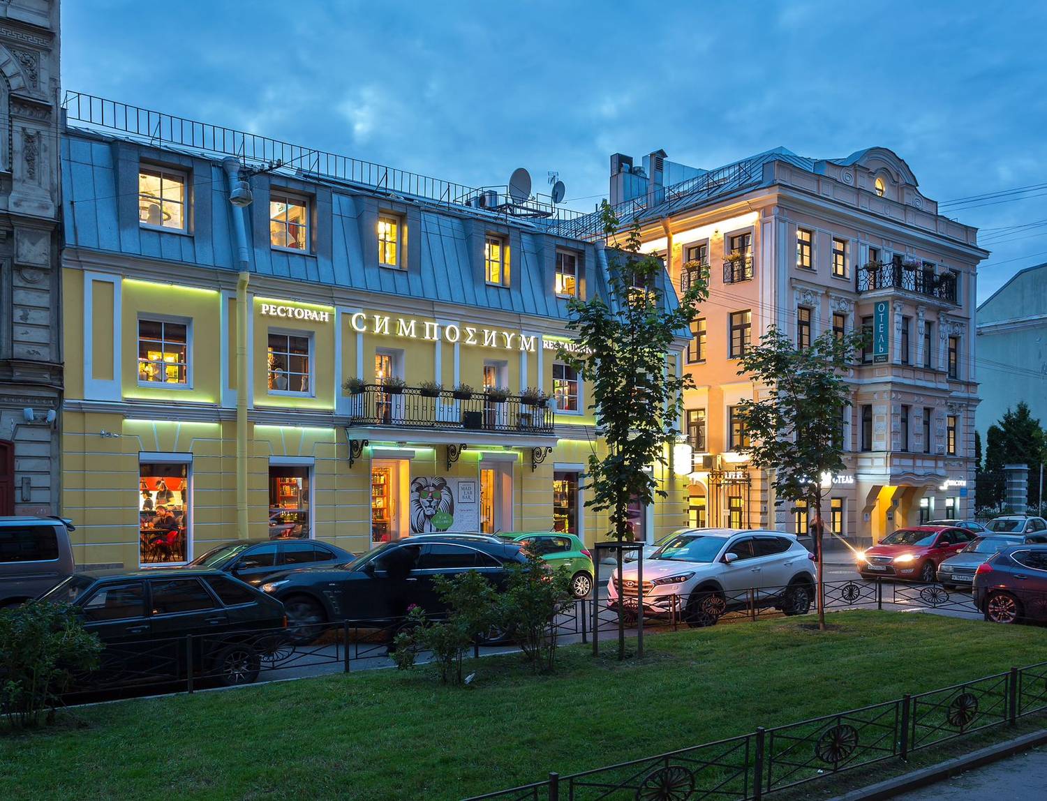 «Симпозиум» по адресу ул. Достоевского, 19/21 — ресторан-библиотека в историческом особняке на Владимирской.