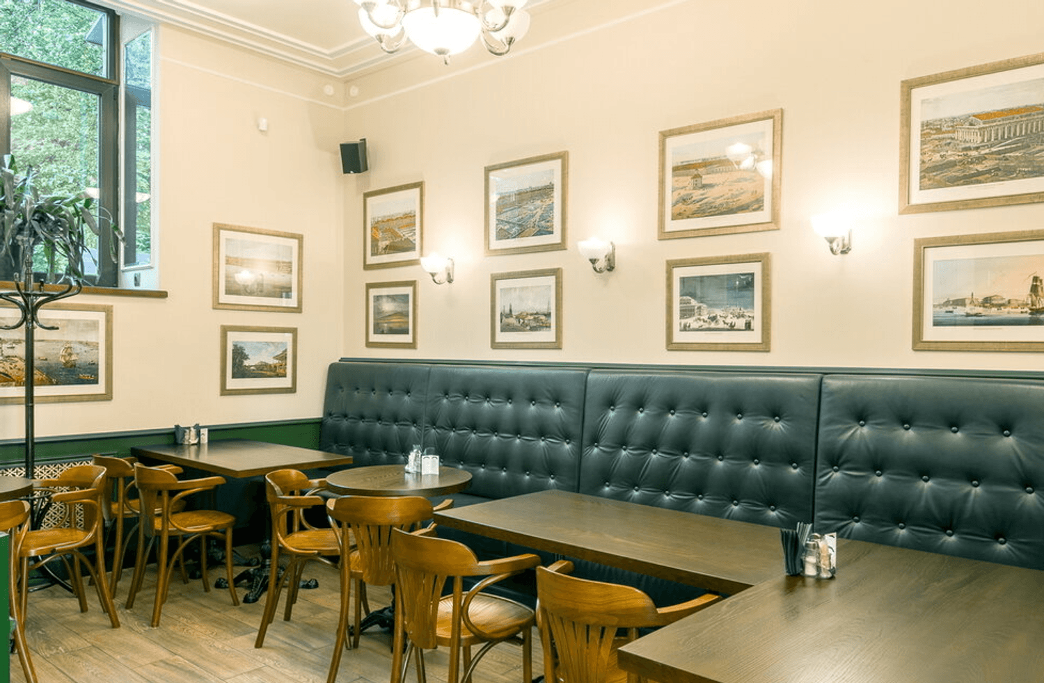 Еда и напитки. В меню — сытные пироги: мясной, рыбный, с курицей и картофелем, с вишней сыром, яблоком и ежевикой. На обед можно заказать бефстроганов с тартаром из огурца, куриные крокеты, стейк из фореля с соусом тартар. К блюдам стоит взять сок, морс, чай или же кофе.