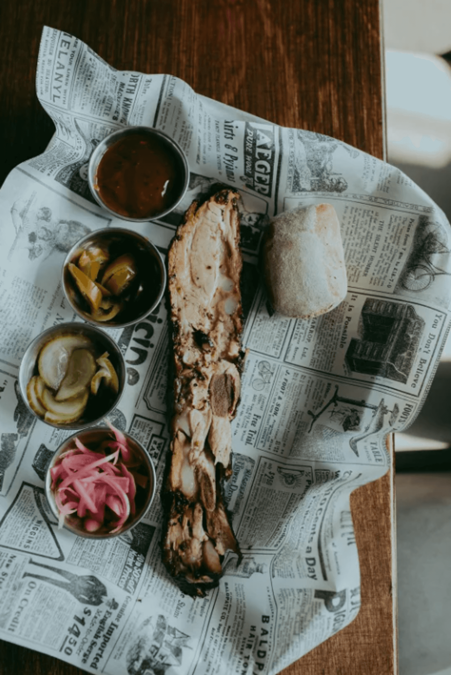 Еда и напитки. В меню — мясные блюда из смокера: ребрышки, стейк из свиной шеи, домашние колбаски, мозговые косточки и бургер цезарь. В пивной карте — около 20 сортов разливного и более 50 видов бутылочного пива, включая гавайские эли и бельгийские фруктовые сорта. Дополняют выбор авторские настойки на тыкве и перце.