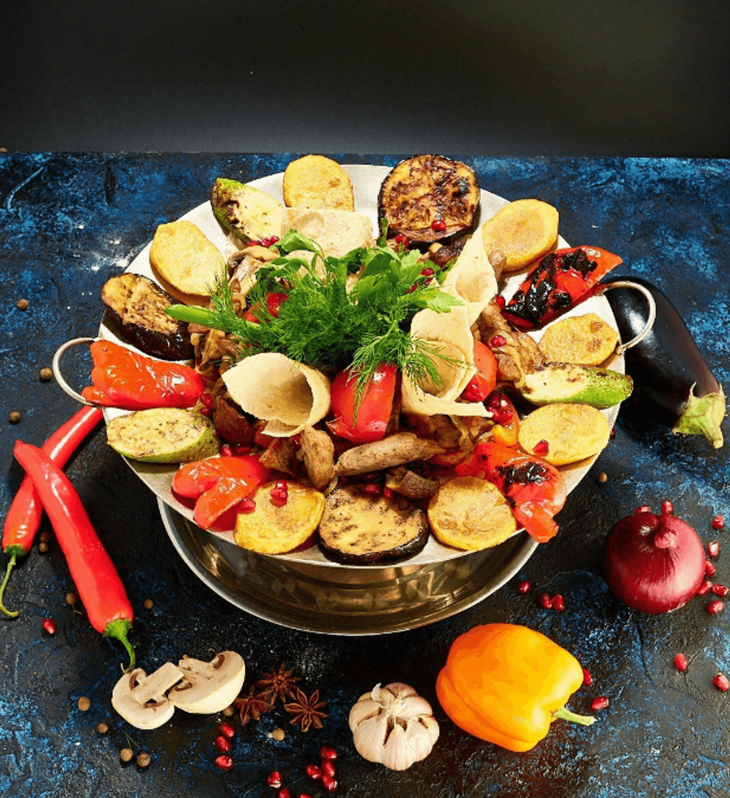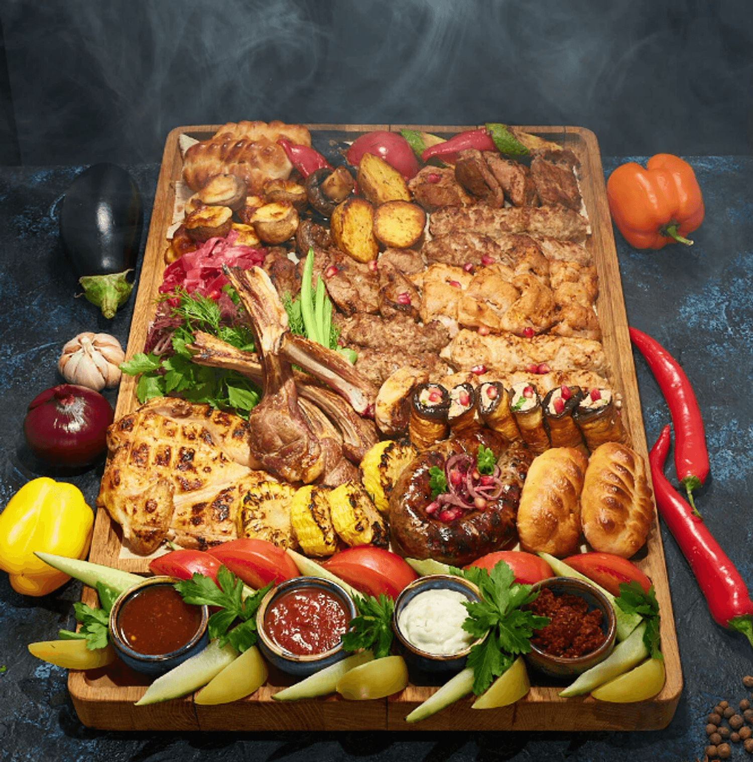 Еда и напитки. В меню хачапури, долма, хинкали, чанахи из баранины, чебуреки, шашлыки и рыба на углях. В барной карте представлены грузинские вина и чача.
