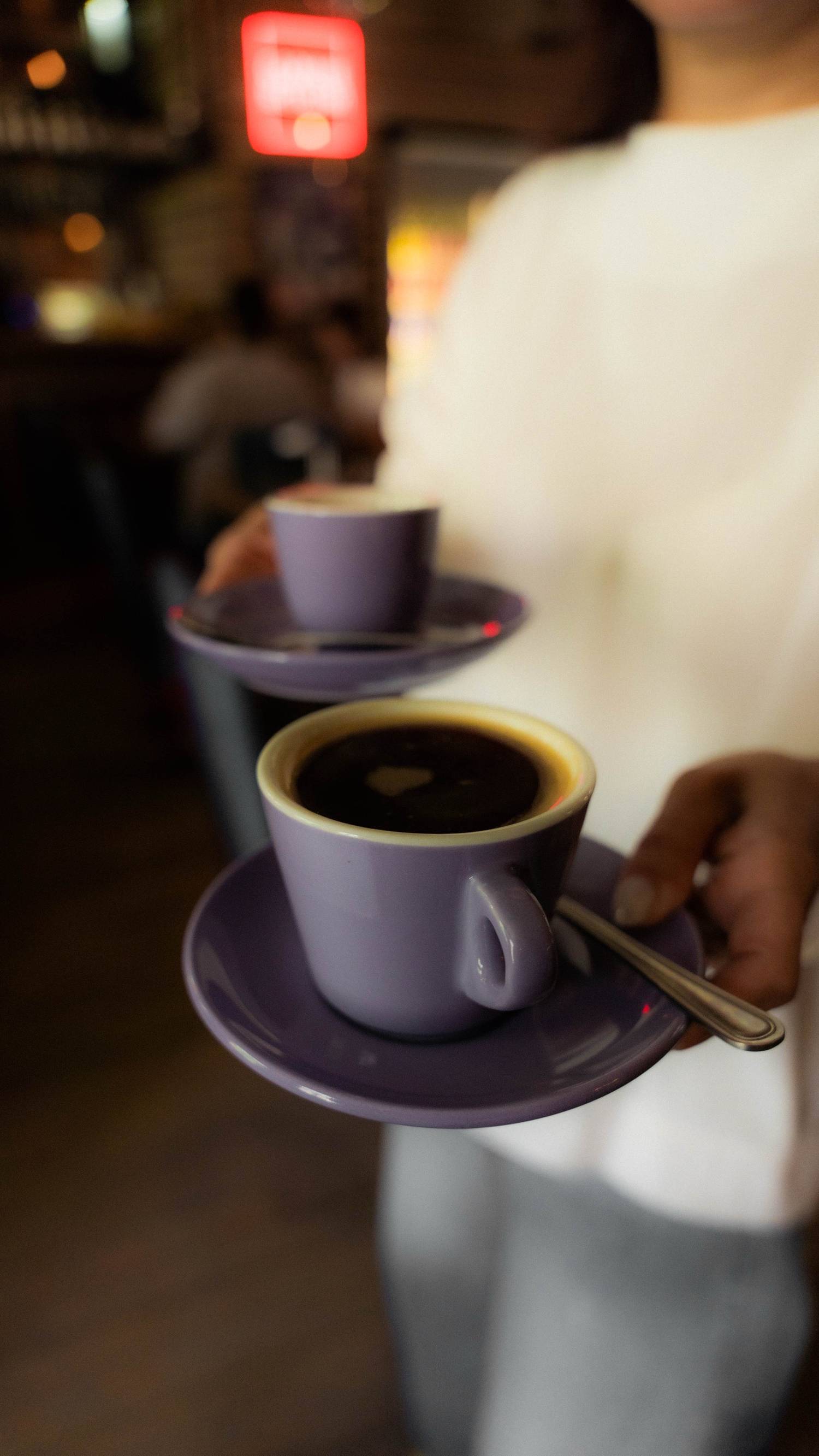 Еда и напитки. В меню представлено около 20 видов кофе и кофейных напитков, какао, горячий шоколад, чаи, лимонады и смузи. Из еды — бейглы, кесадильи, азиатская лапша, салаты и завтраки (каши, омлеты, вафли), которые действуют весь день. До 12:00 к завтракам подают американо или эспрессо, а по будням с 12:00 до 16:00 доступны бизнес-ланчи.