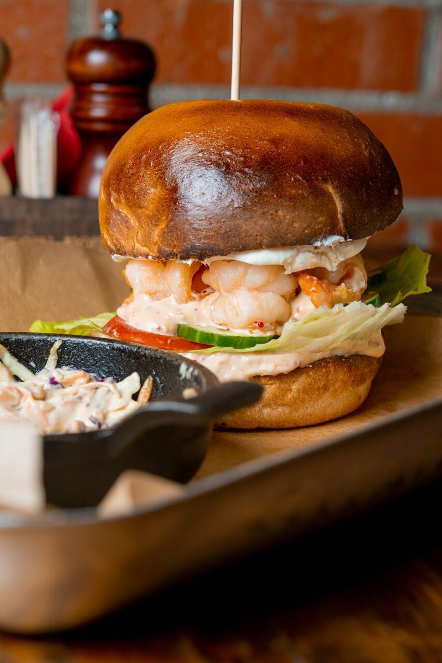 Еда и напитки. В меню — креветочный бургер, карамельный ролл, вок с курицей, судак с кабачком в томатном соусе. На компанию можно взять плато ребер барбекю, мясная тарелка и пивная тарелка.