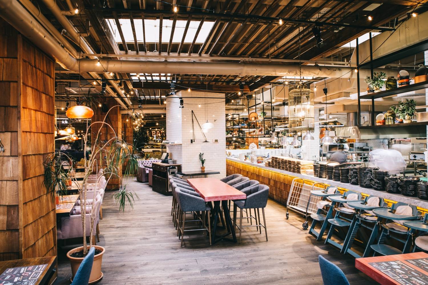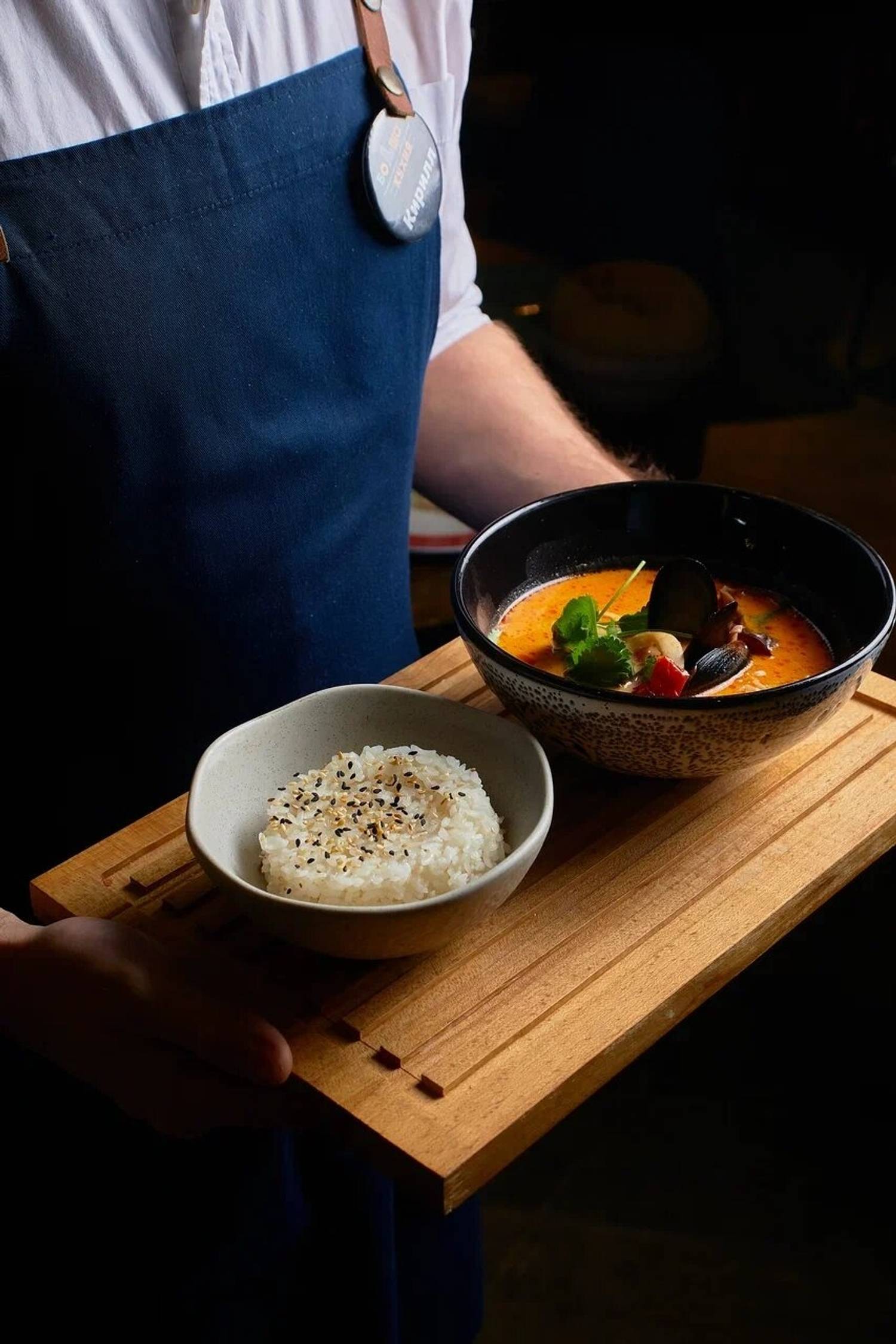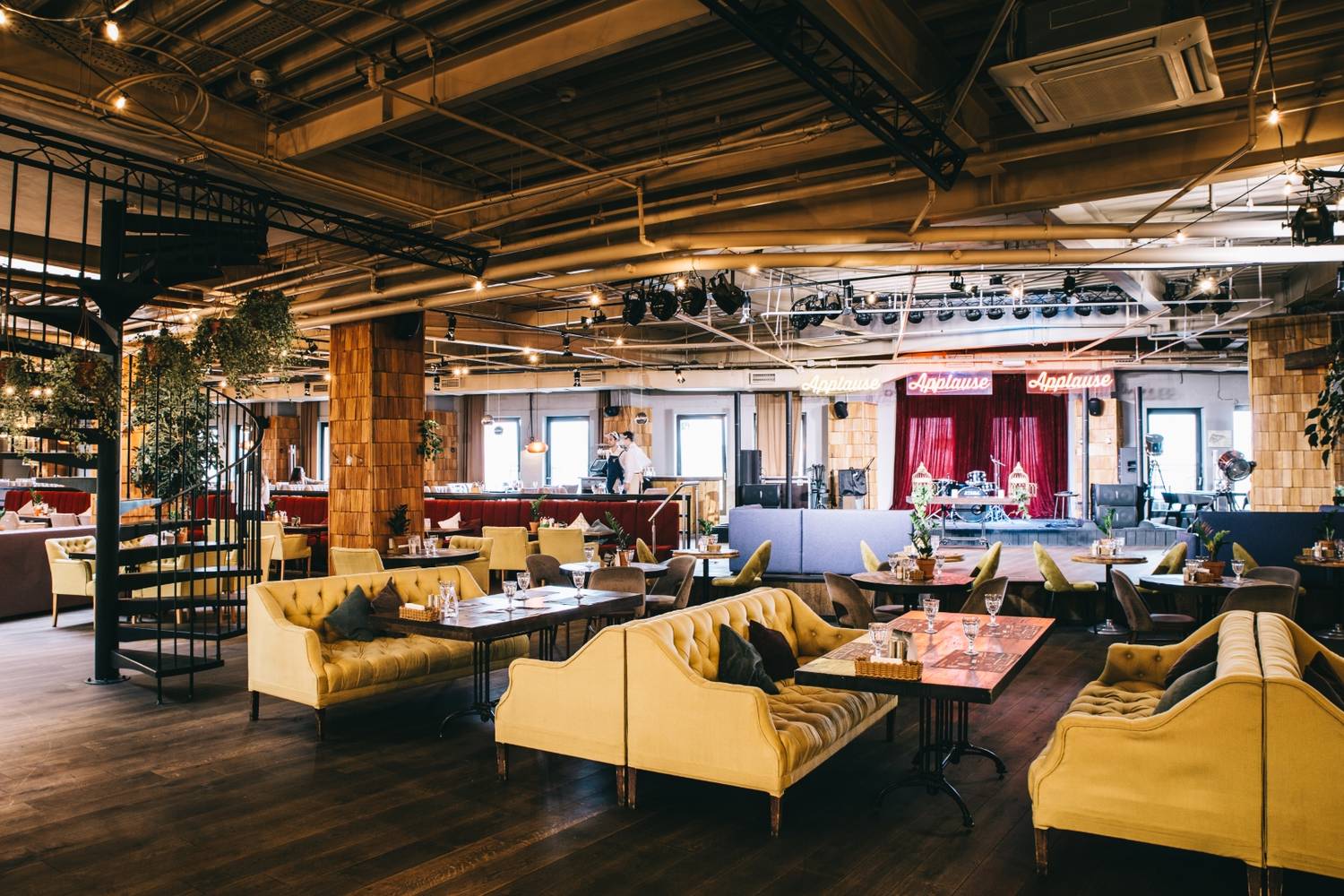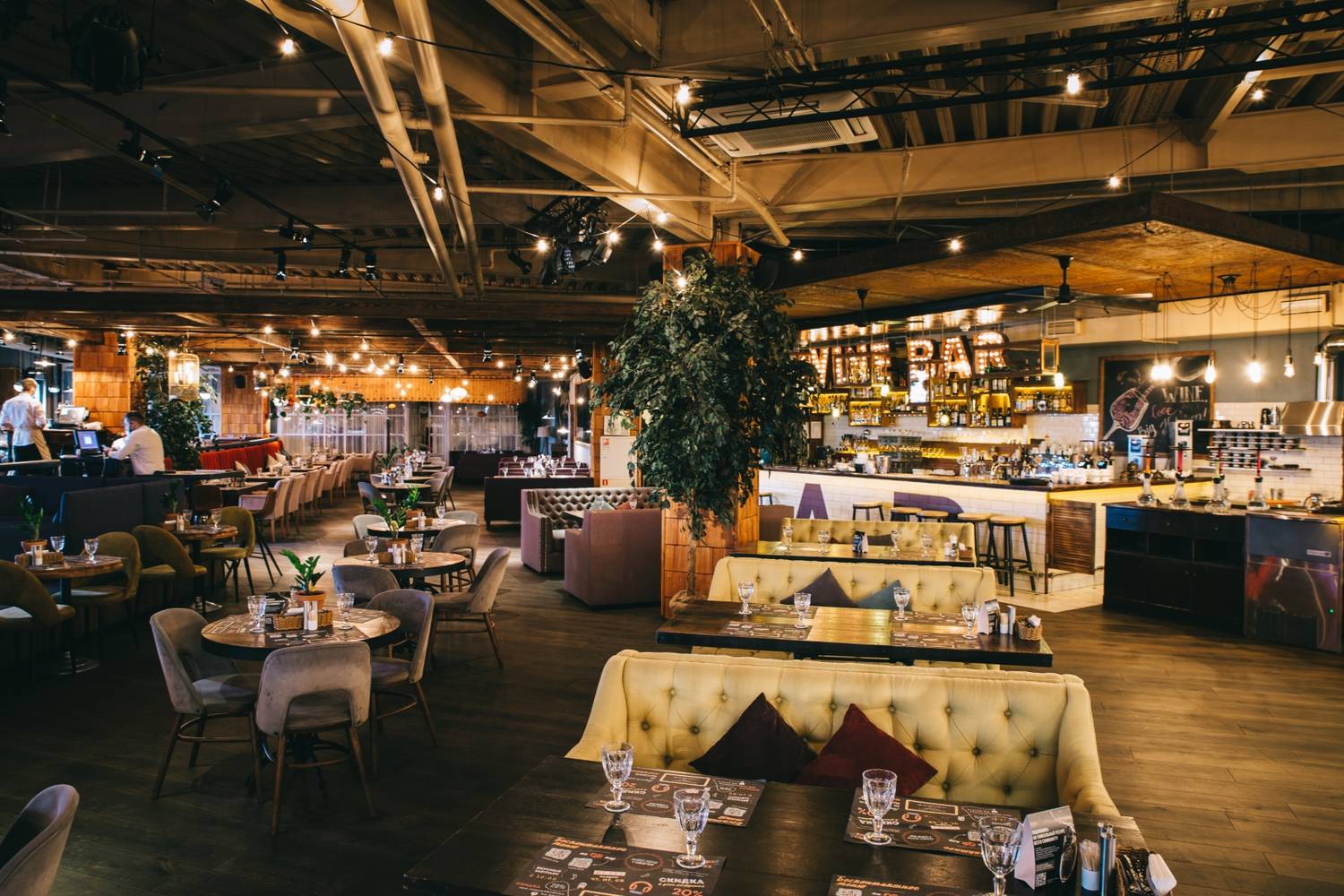 Атмосфера. Пространство с открытой кухней в центре зала создает ощущение театра, где главное действо — приготовление блюд. А лампы в клетках, живые растения и уютные мягкие зоны объединяют индустриальный вайб с обстановкой домашнего тепла и комфорта.