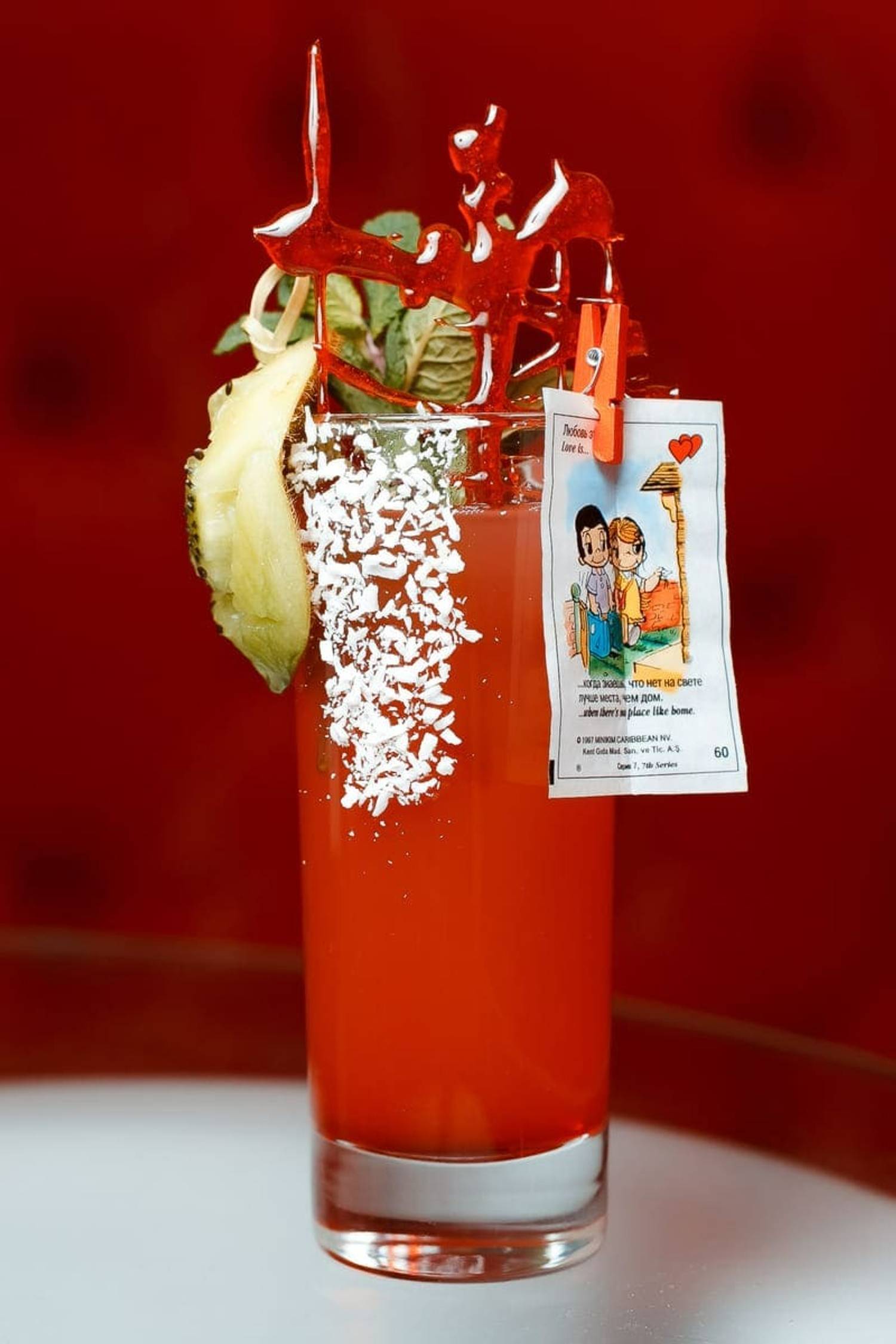 Еда и напитки. В меню — европейские и русские блюда с провокационными названиями: от пикантной тортильи с куриной грудкой до и телячьих щечек с соусом демиглас и чили арахисом. Барная карта составлена из разливного пива, вина и оригинальных коктейлей.