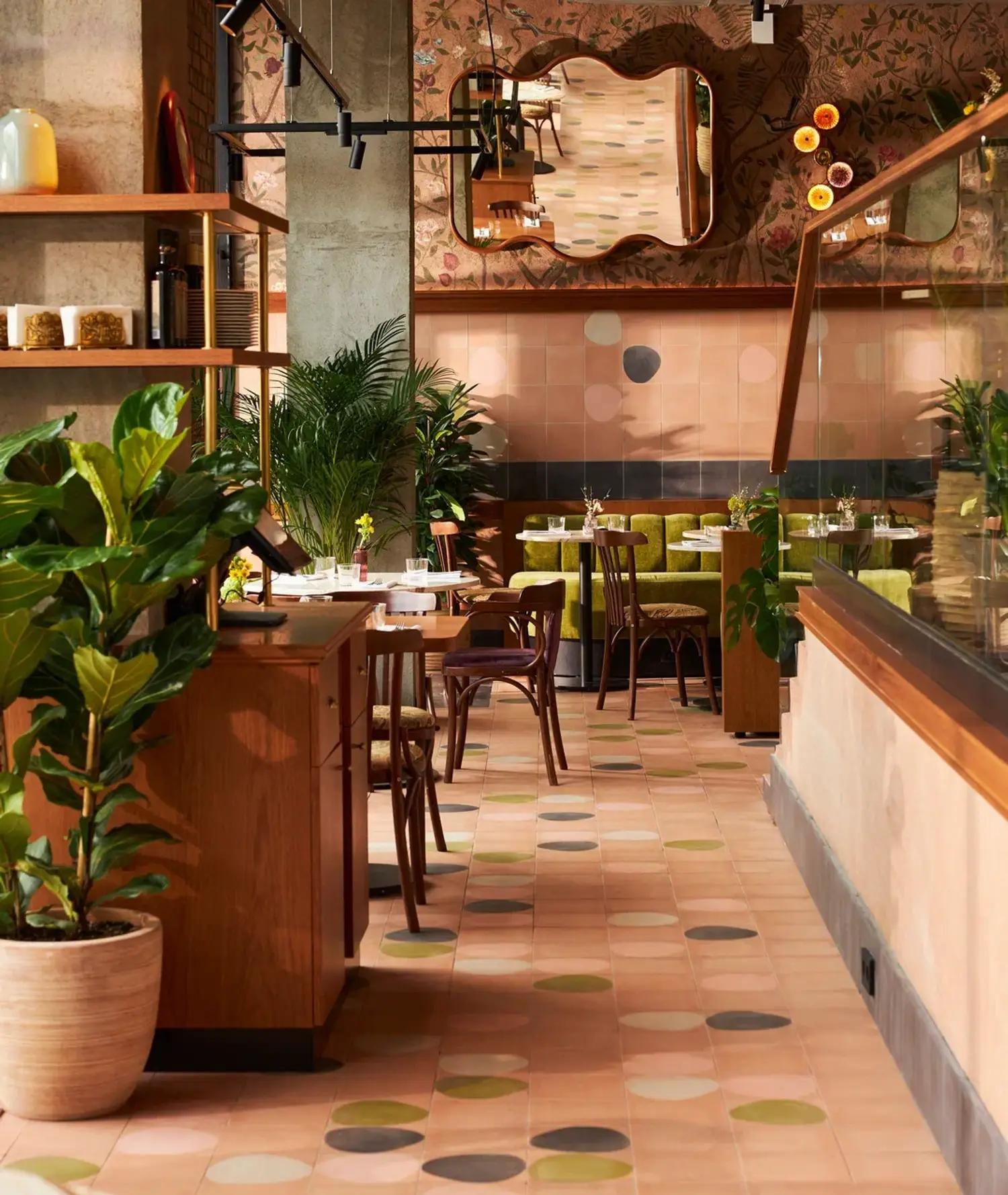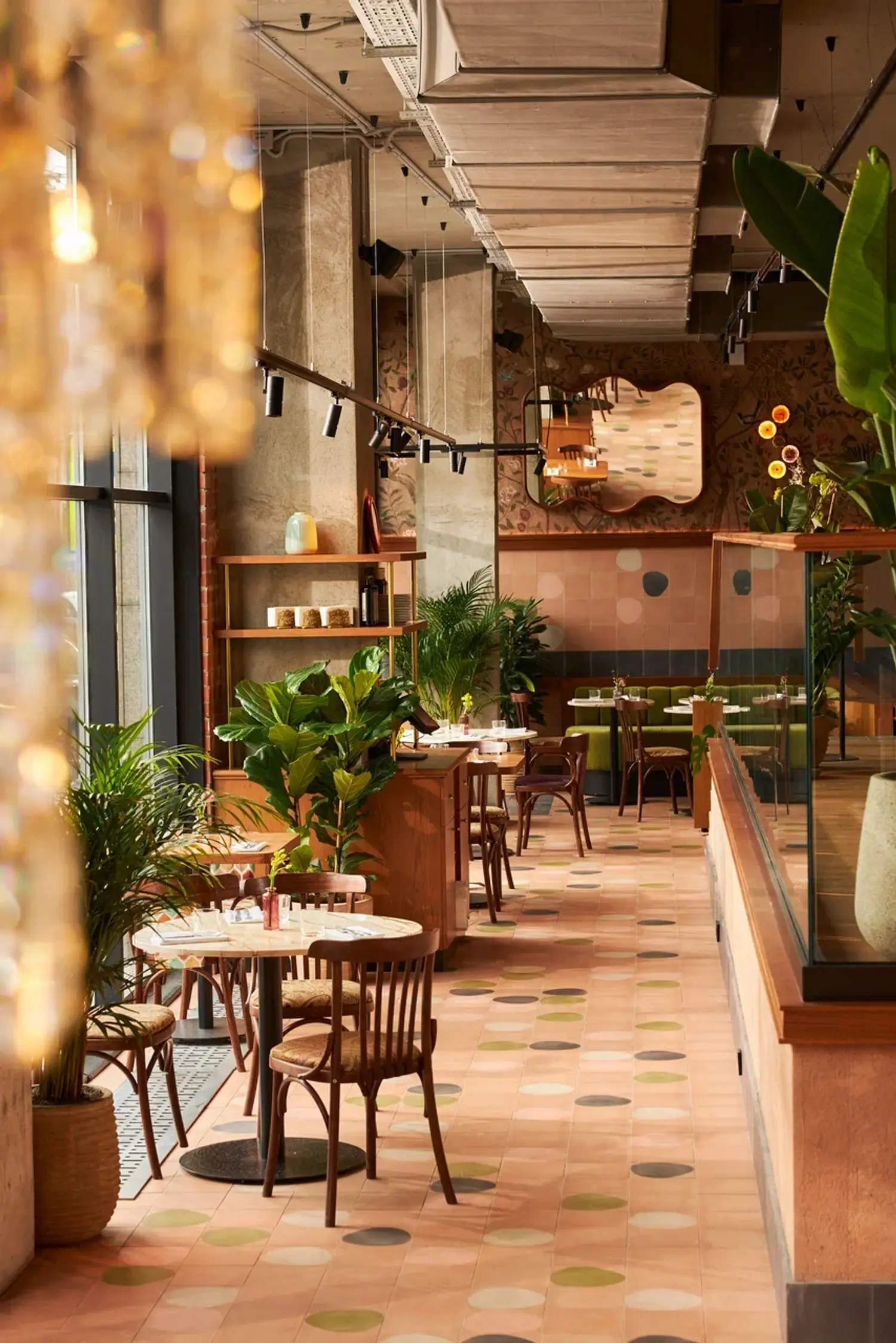 Атмосфера. Интерьер выполнен в теплых зелено-коричневых тонах с обилием дерева: здесь сочетаются винтажные венские стулья, натуральные столешницы, росписи на стенах и плитки и светлые акценты с обилием живых растений. По выходным здесь выступают кавер-группы, создавая оживленную, но в то же время камерную обстановку.