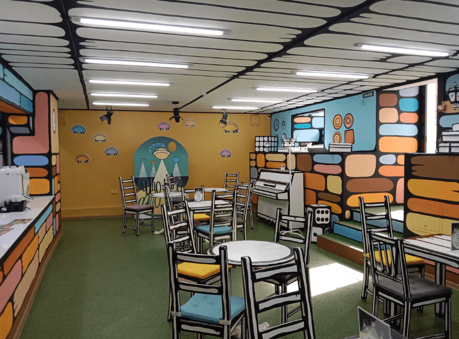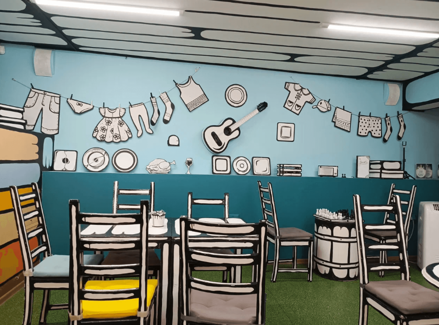 "Чудо-Юдо" на Социалистической — это место, где искусство и еда встречаются в необычном интерьере, вдохновленном графическими романами. Все здесь выполнено в черно-белых тонах: белые стены и мебель с черными акцентами — отличное место для ярких фото, как будто вы оказались внутри комикса! Раньше кафе было полностью черно-белым, но теперь один из залов заиграл яркими цветами.