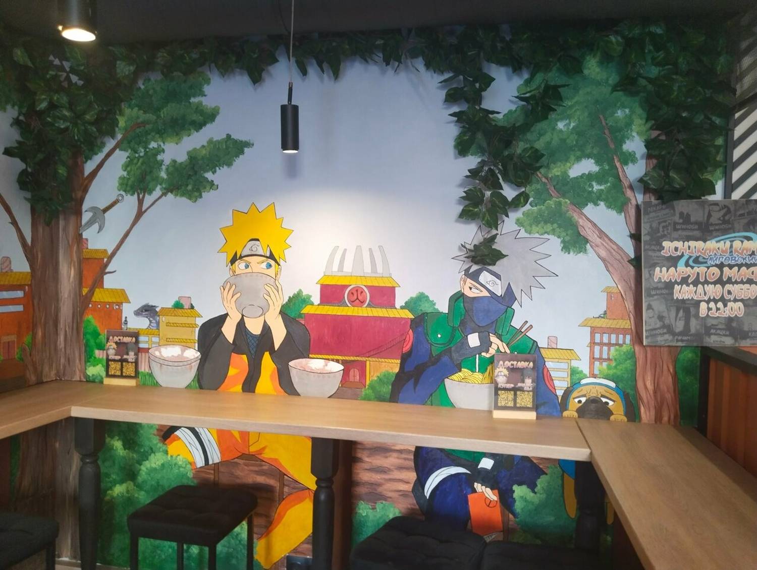 «Ichiraku Ramen coffee» по адресу пр. Лиговский, 71 — раменная в стилистике аниме-вселенной «Наруто» недалеко от Московского вокзала.