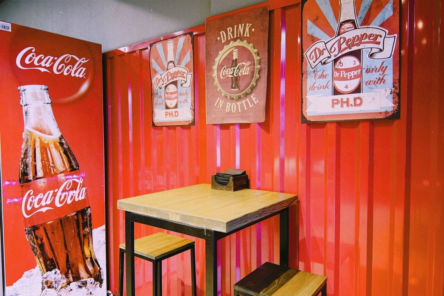 Атмосфера. Это одна из самых ярких точек сети. Внутри сразу бросается в глаза красная стена с постерами в современном стиле. Рядом с этой стеной поставили высокий стол и стулья барного формата. Напротив, на другой стене звучный девиз большими буквами — «Шаурмой едины». Помимо посадки за высокими столами, можно сесть на диванах. В холодильниках здесь выставляют лимонады, чтобы в теплое время года гости могли получить напитки холодными.