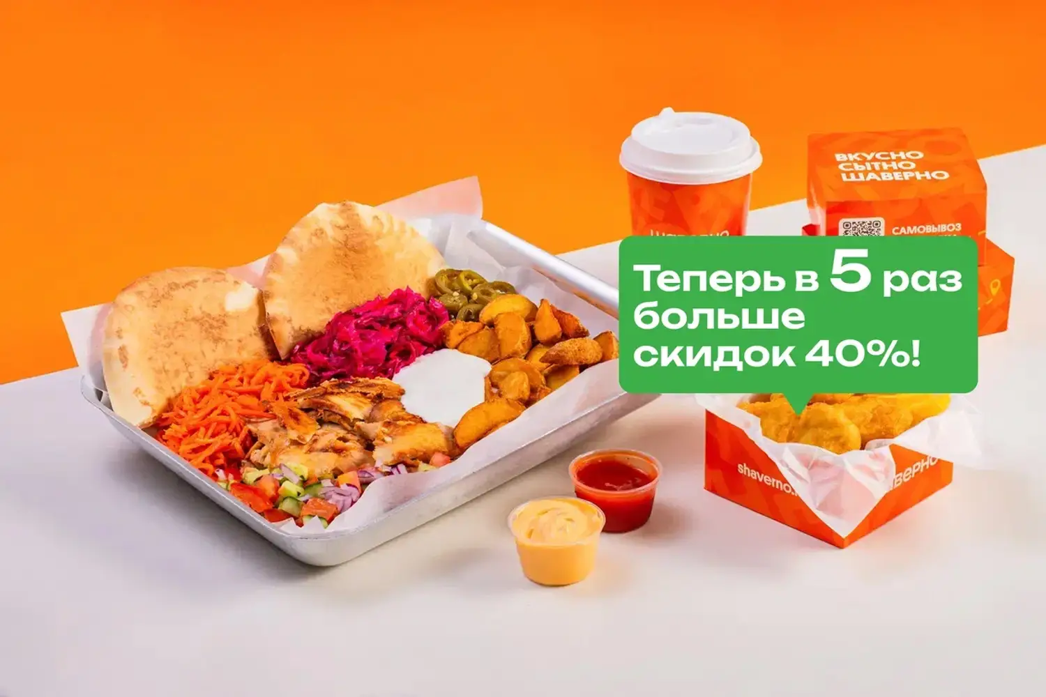 Еда и напитки. Фокус сделан на шаверме для быстрого перекуса: особенно популярны версии в пите, Баварская с колбасками и авторский сырный донер. Из напитков — лимонад, чай и компоты, которые можно взять с собой в бутылочке.