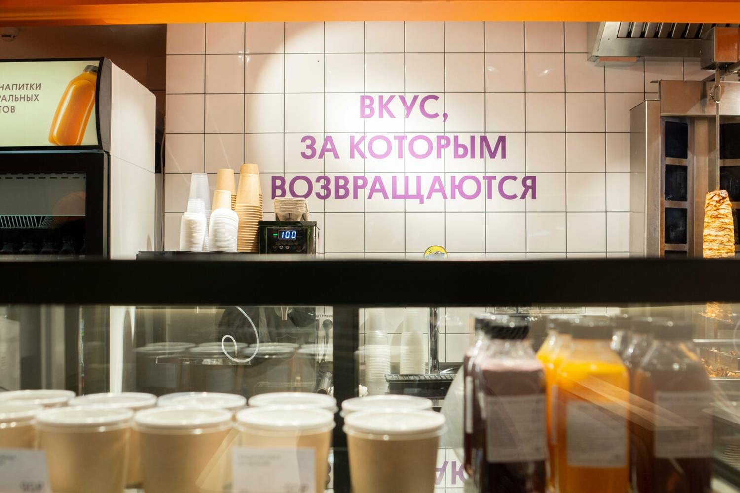 Еда и напитки. В меню — классические варианты шавермы в лаваше, пите и на тарелке, включая авторские версии (например, Баварскую и по-корейски. Также представлены донеры, картофель фри, салат «Оливье» и комбо-наборы. На десерт — трайфлы в стаканчиках, а из напитков предлагают лимонады, морсы и компоты.