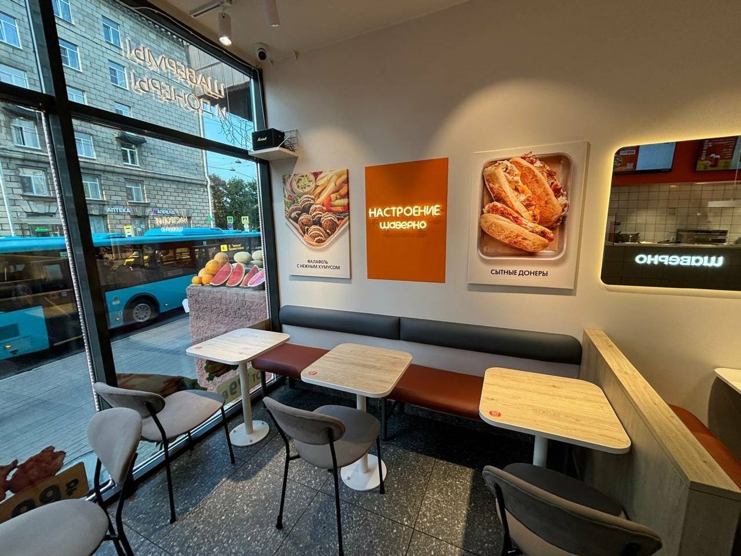 «Шаверно» по адресу Средний проспект ВО, 100 — стильная и слегка футуристичная сетевая шаверменная.