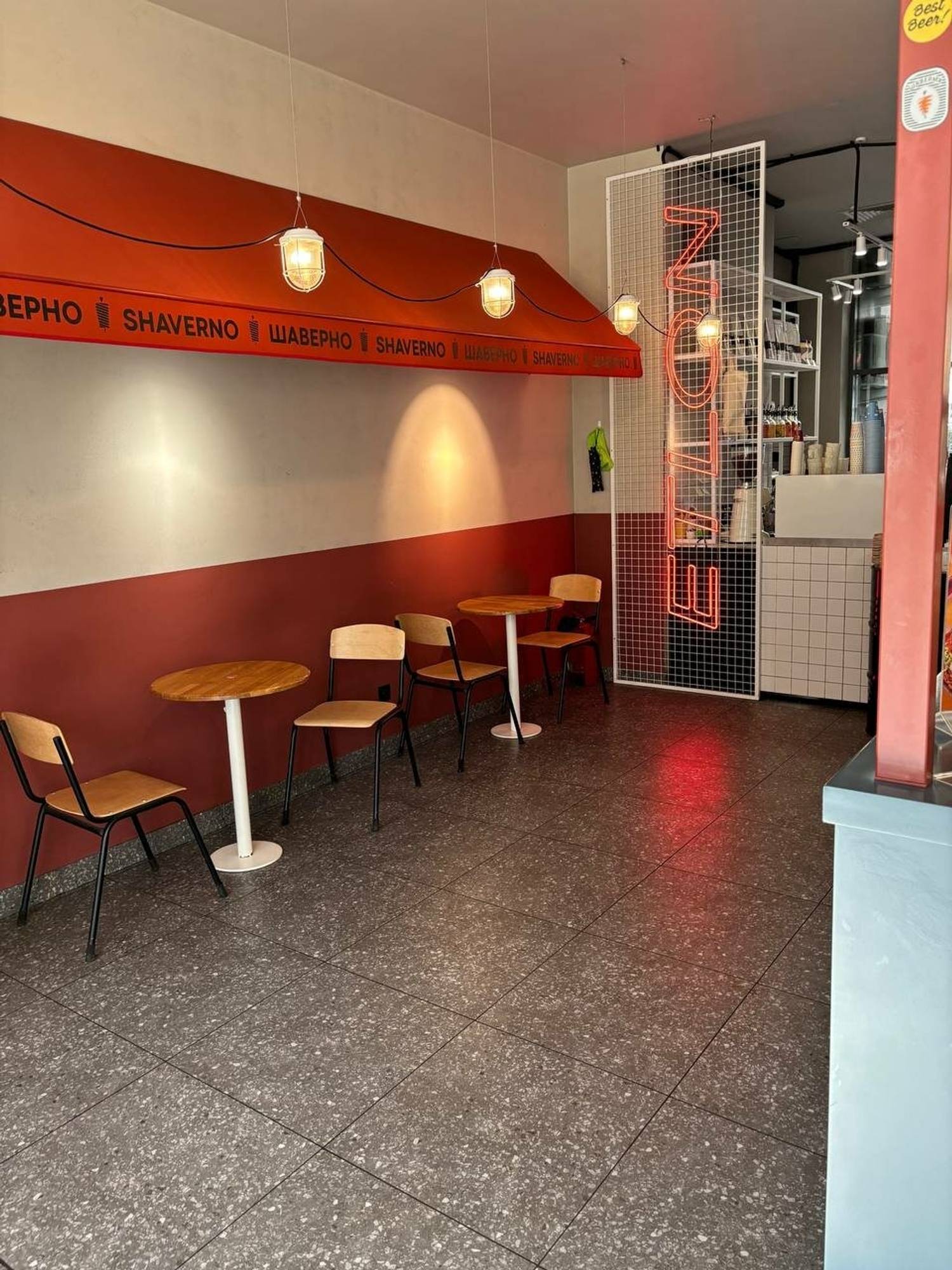 «Шаверно» по адресу Просвещения, 15 — просторное заведение с классическим сетевым дизайном.