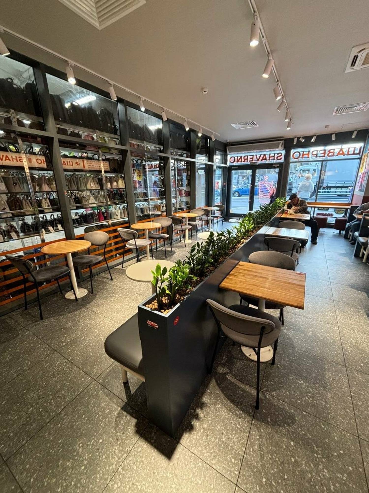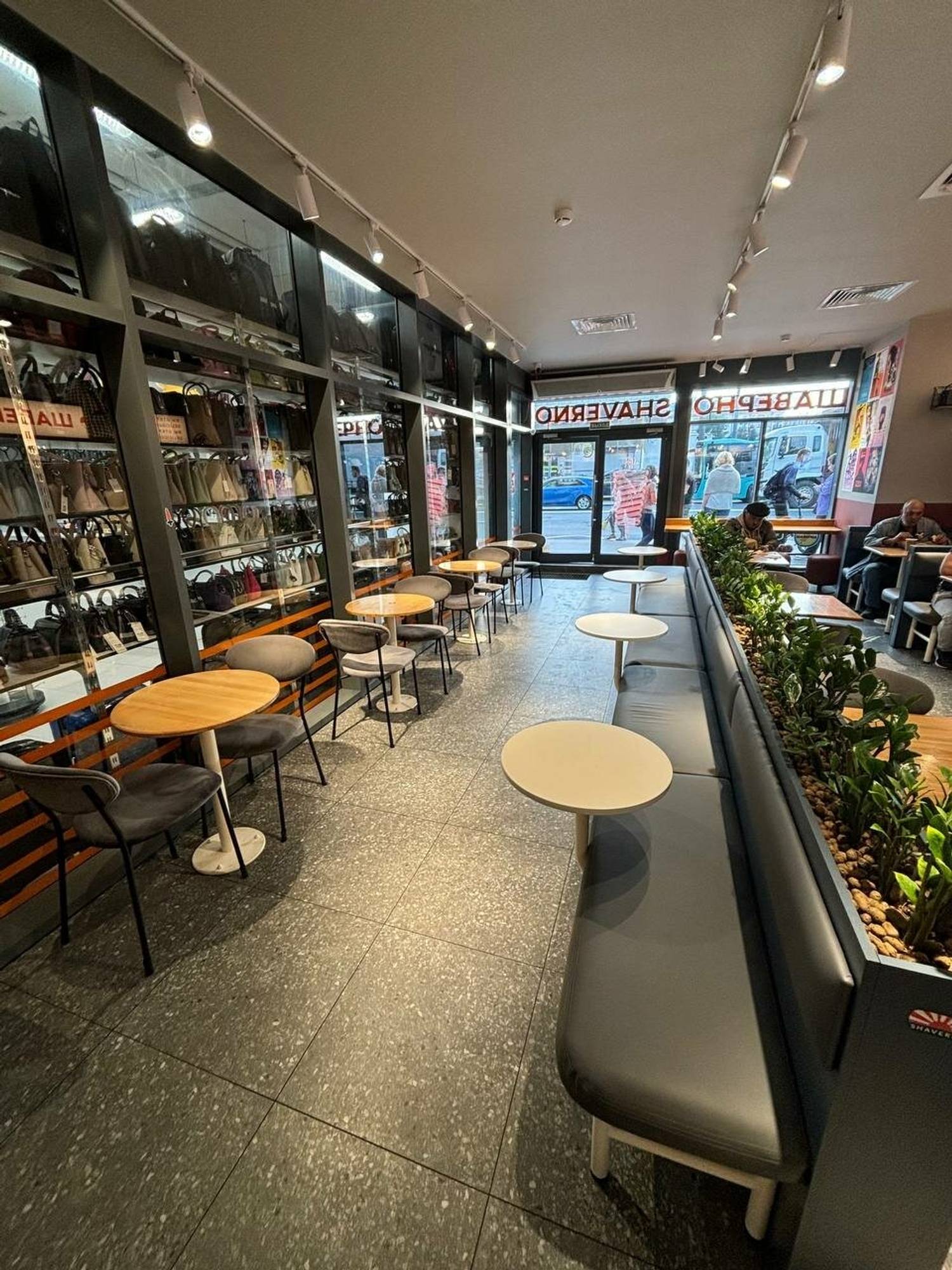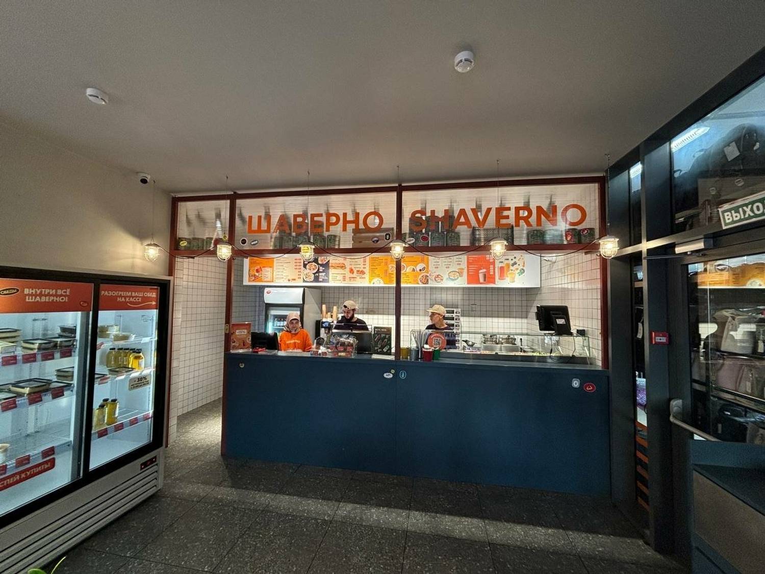 Еда и напитки. В меню — шаверма в лаваше или пите, донеры и комбо-наборы. Готовую еду можно взять навынос из холодильника, что особенно удобно в часы пик.