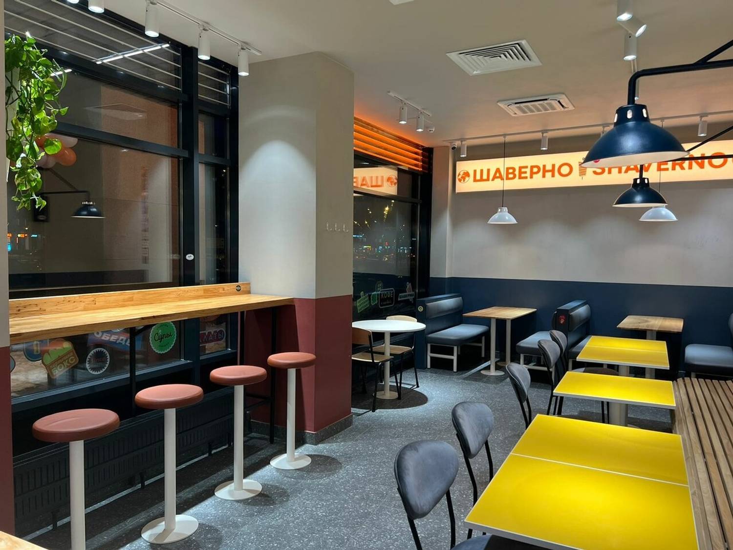 «Шаверно» по адресу Комендантский проспект, 63 — светлое и стильное кафе с разнообразными зонами рассадки.