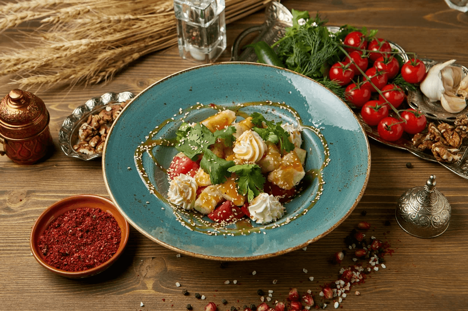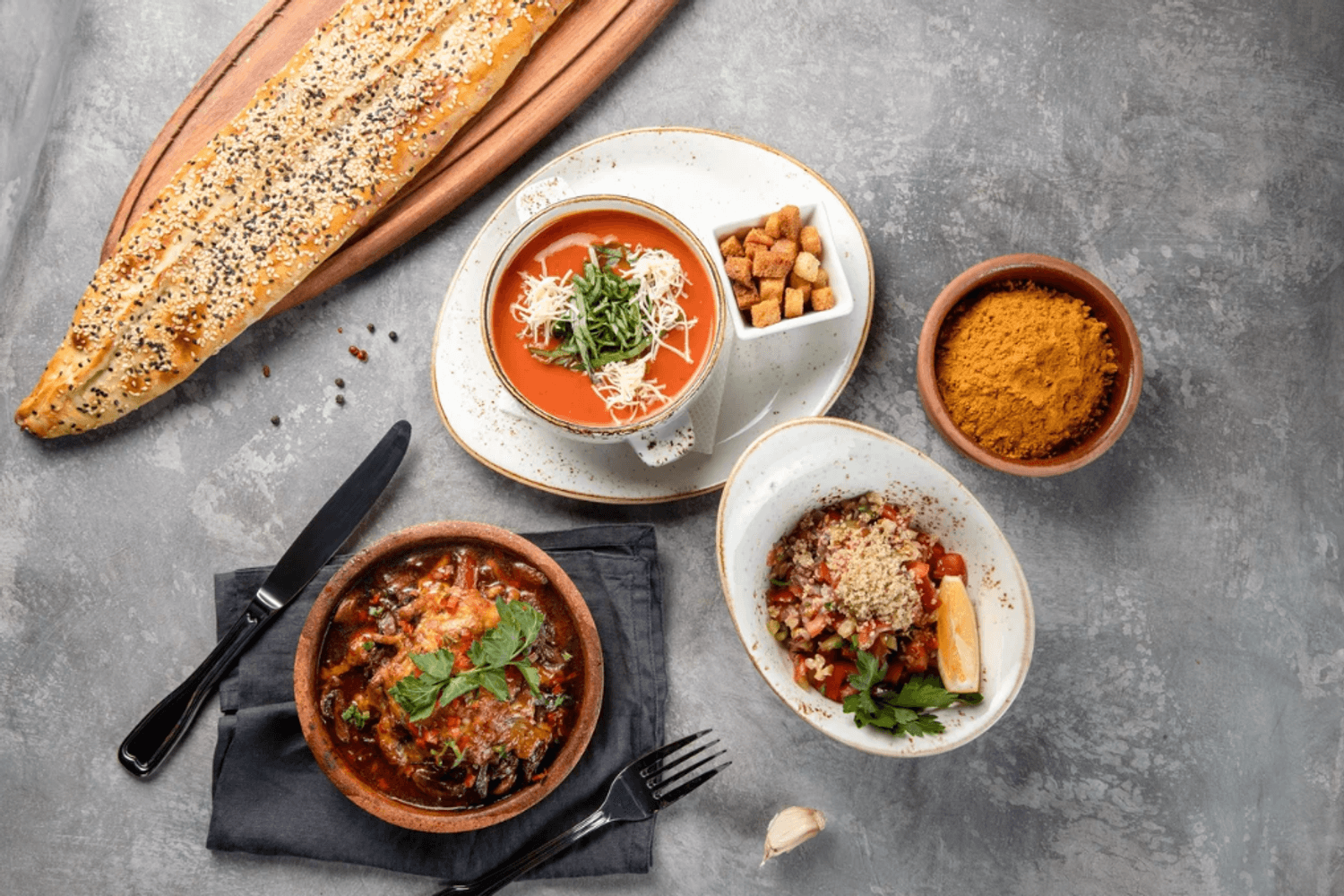 Еда и напитки. В меню — классика турецкой и европейской кухни: денер с говядиной в лепешке пиде, мясо и рыба на мангале. Также есть готовые варианты завтраков, которые рассчитаны на одного или сразу на двоих.