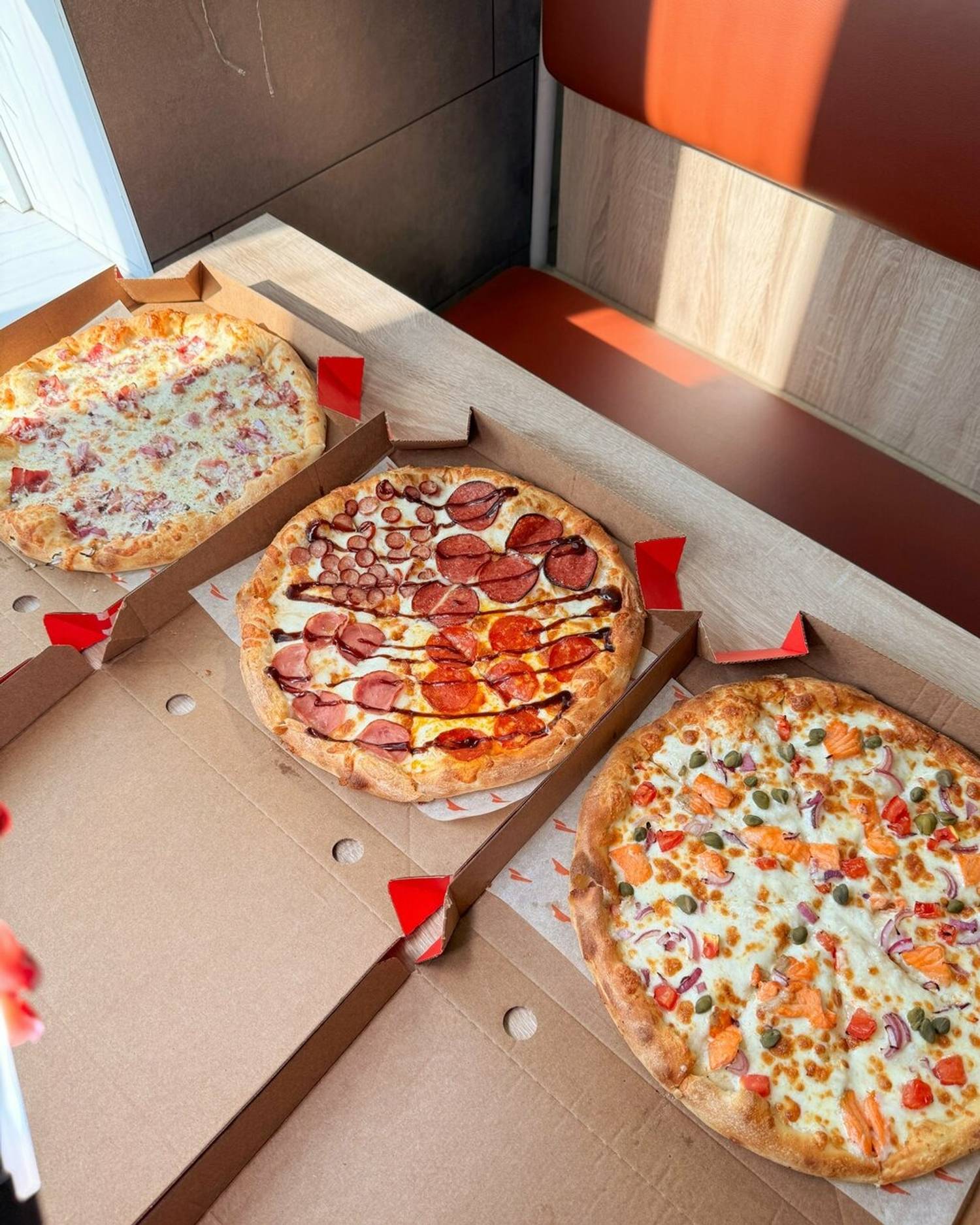 Еда и напитки. В меню более 25 видов пиццы: барбекю риф, жюльен, биг чикен, курица с грибами, цезарь, цыпленок ранч, а также римская с лососем и сладким чили, трюфельная. Кроме того, есть закуски вроде «cheese & cheers» с острыми колбасками или карбонара.