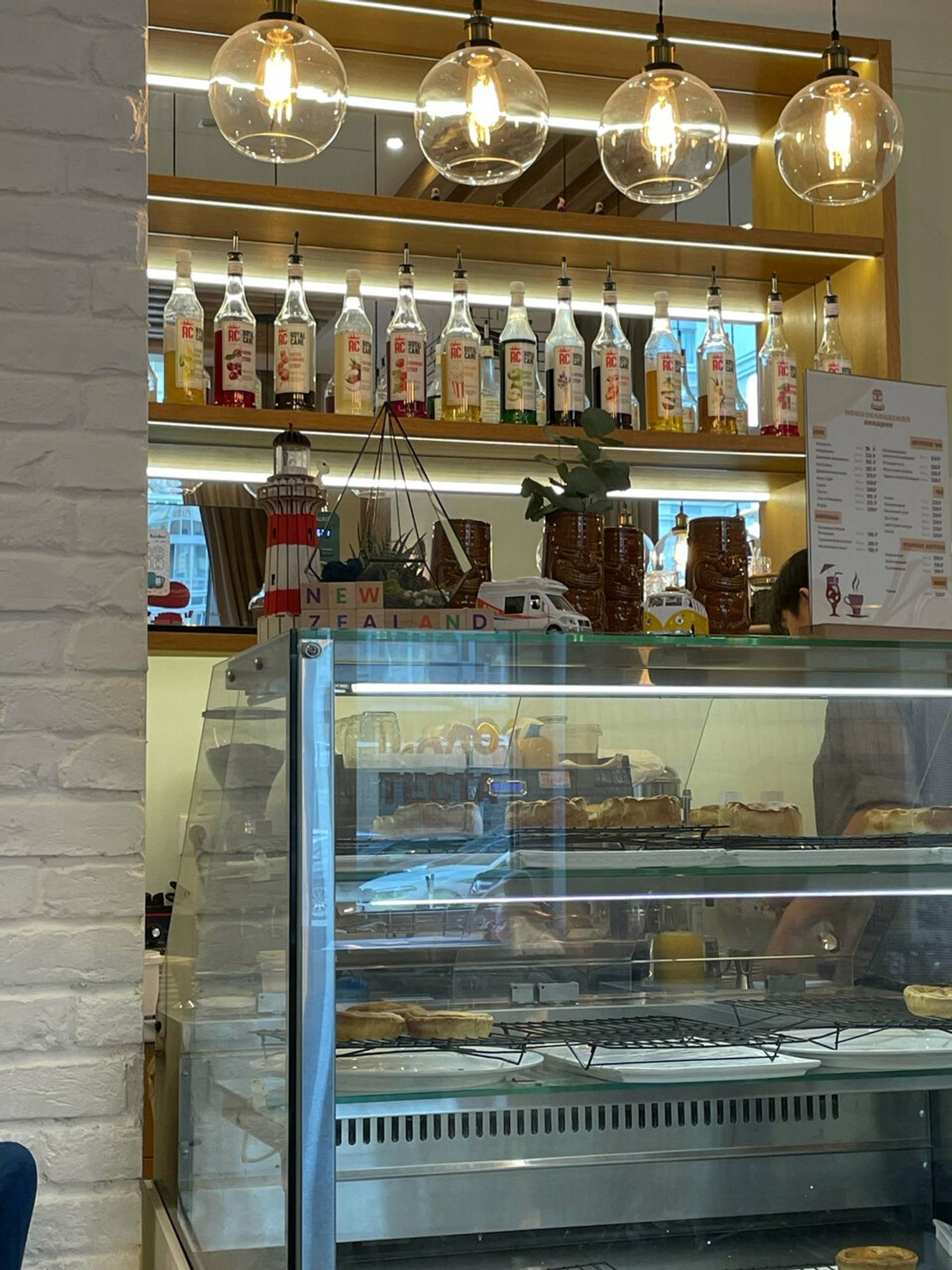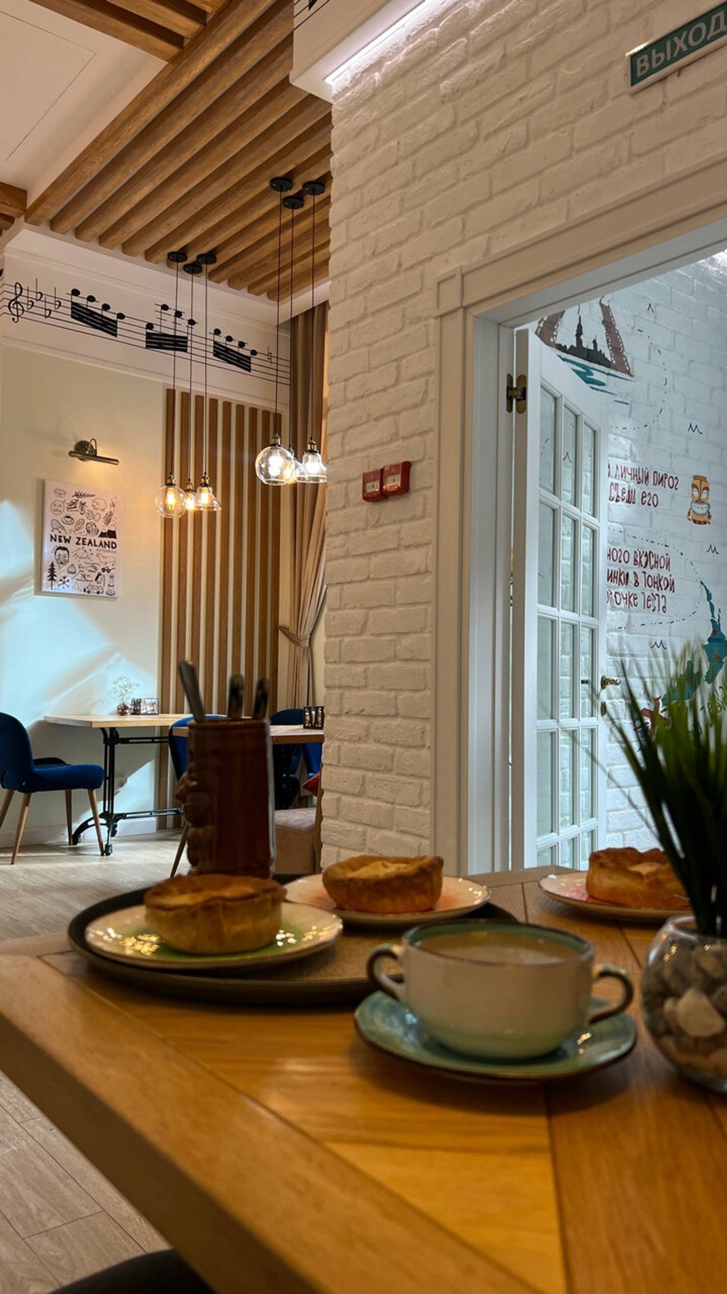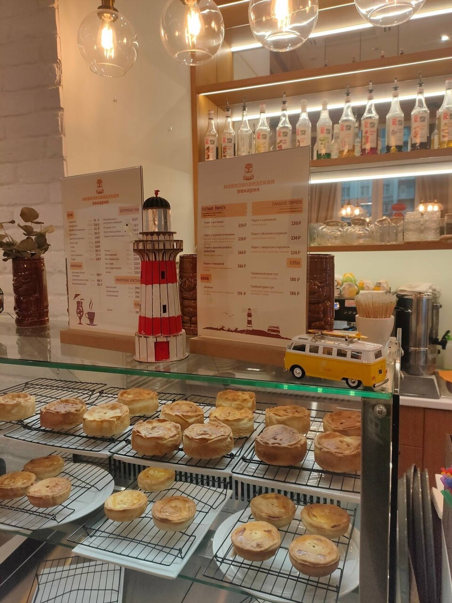 Еда и напитки. Основу меню составляют новозеландские пироги с тонким слоеным тестом: сытные варианты с тушеной говядиной и грибами, красной рыбой со шпинатом, а также сладкие версии с творогом или цельной клубникой. Напитки включают классический кофе, авторские чаи и лимонады.