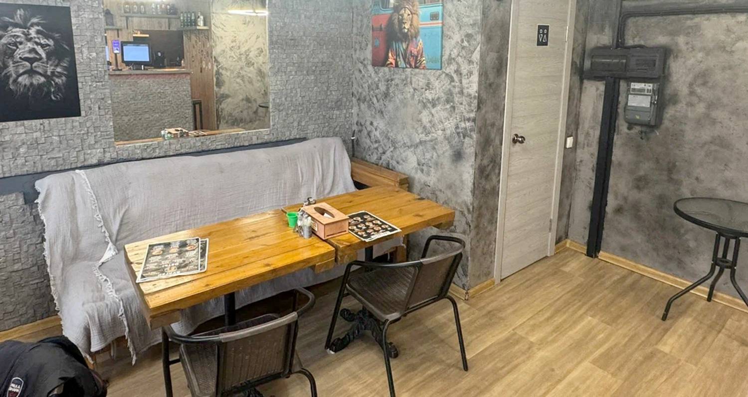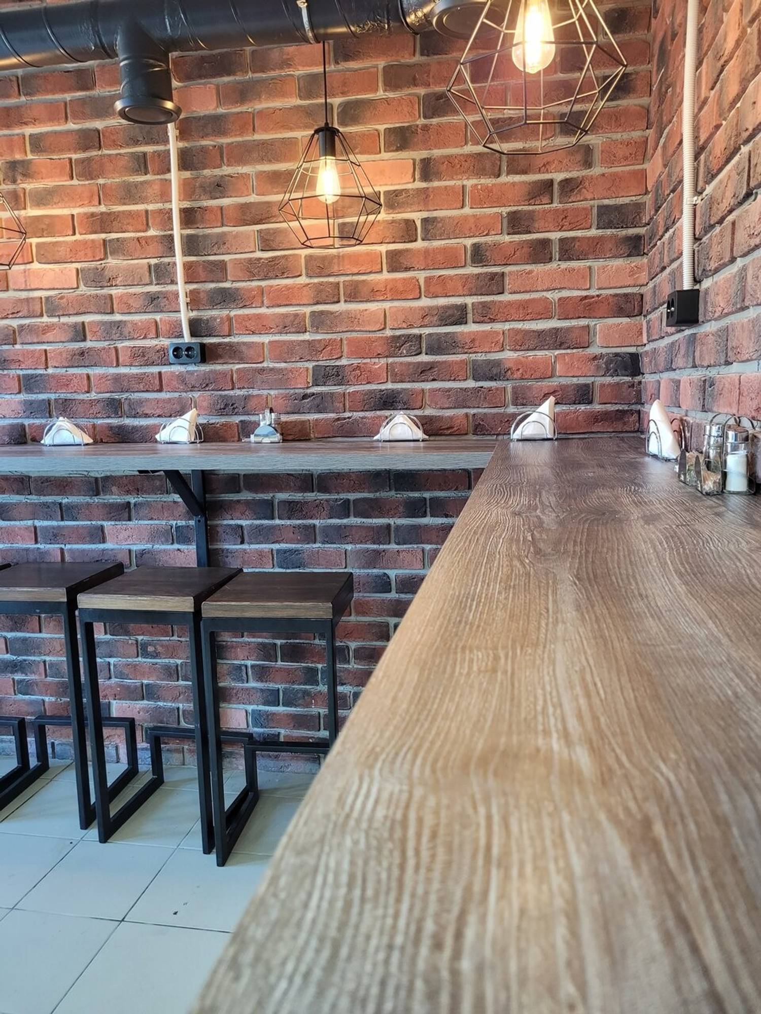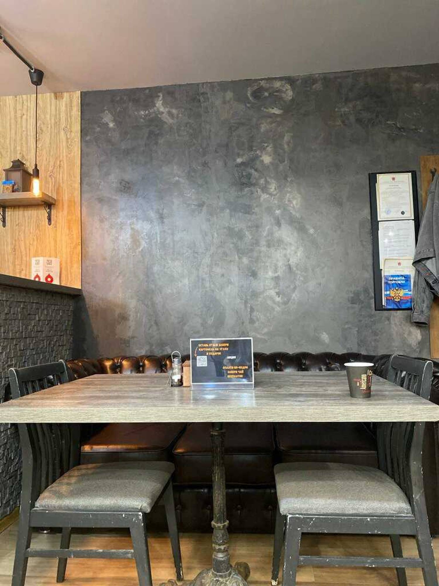 Атмосфера. Интерьер в темных тонах с деревянными элементами выполнен в стиле современного стритфуда. Практичное пространство ориентировано на быстрый сервис, но здесь можно с комфортом расположиться за столиком, чтобы в полной мере оценить блюда с мангала.