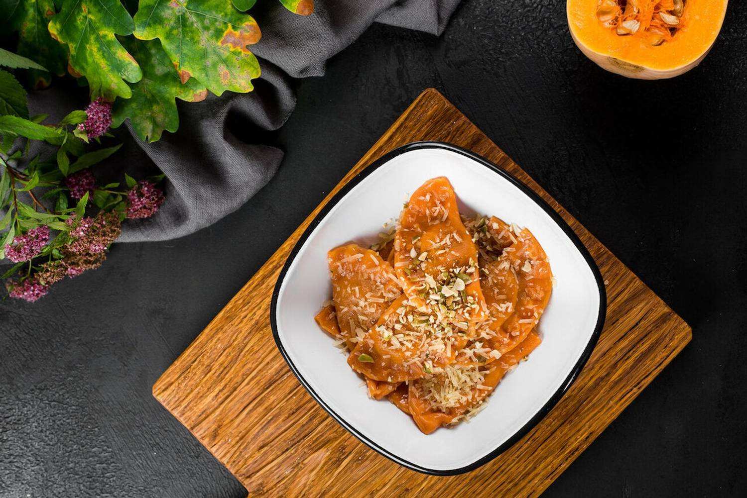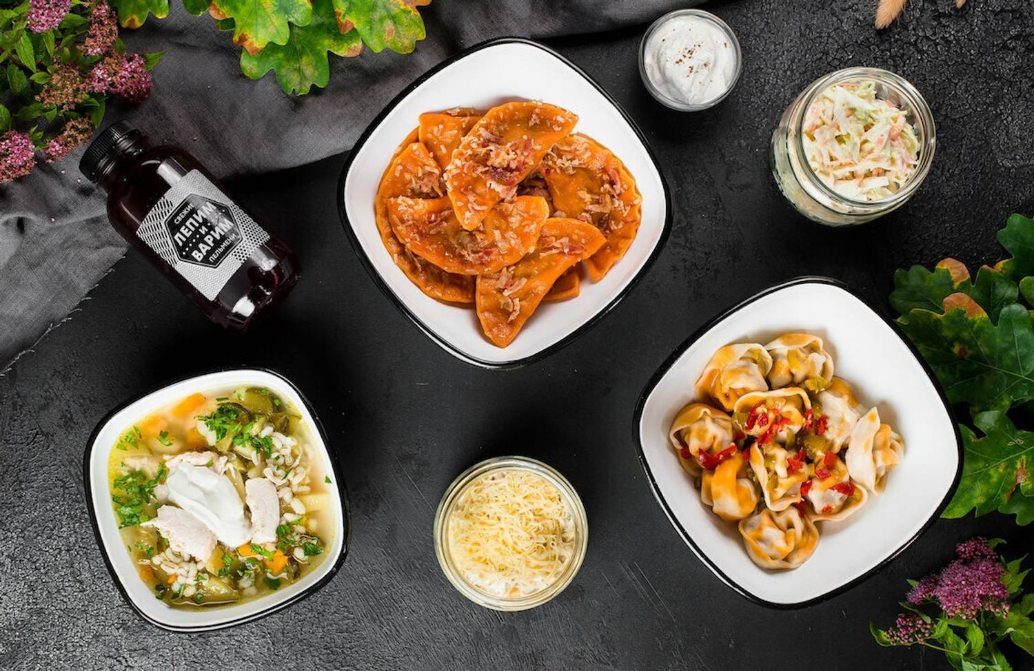 Еда и напитки. В основе меню — около десяти видов пельменей, которые лепят и варят на месте. Начинки охватывают широкий спектр: от традиционной смеси свинины и говядины до курицы, баранины, а также морепродуктов вроде креветок и камчатского краба. Есть и вареники с картофелем и вишневые варианты. Подают блюдо со сметаной и зеленью, а из напитков подают клюквенный морс и домашний лимонад, компот из сухофруктов.
