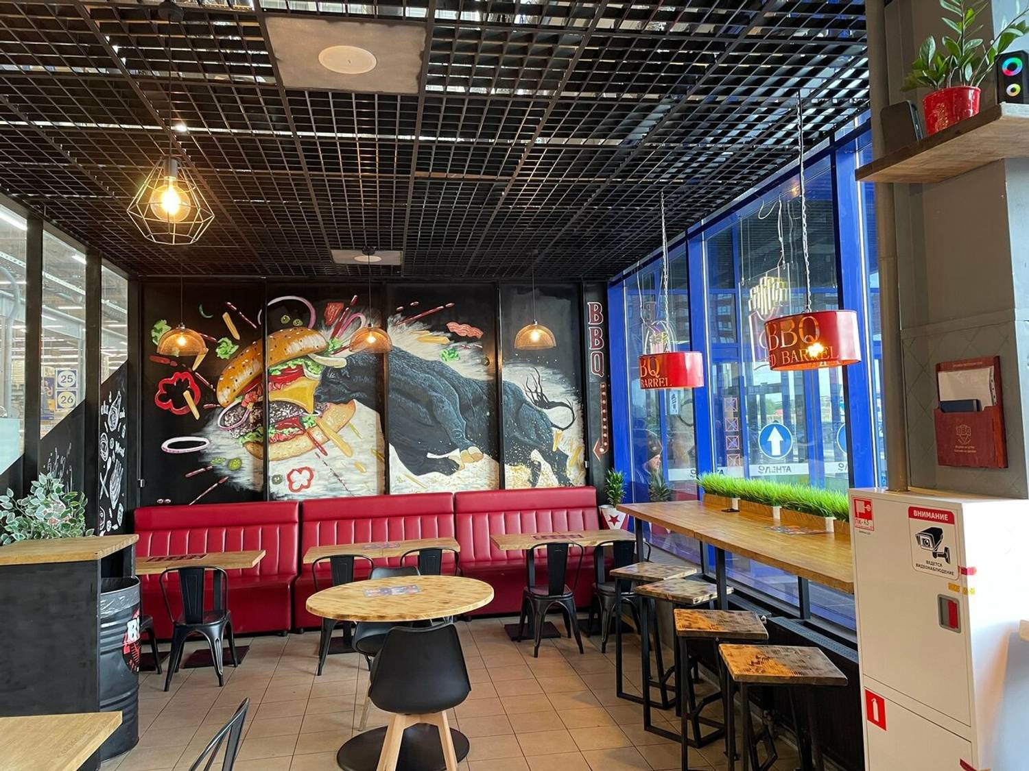 «BBQ Red Barrel» по адресу ш. Таллинское, 25 — сетевое кафе, где основой концепции является приготовление мяса на огне, в американских традициях барбекю. Акцент сделан на блюдах из смокера и гриля, которые подают в атмосфере брутального и стильного интерьера.