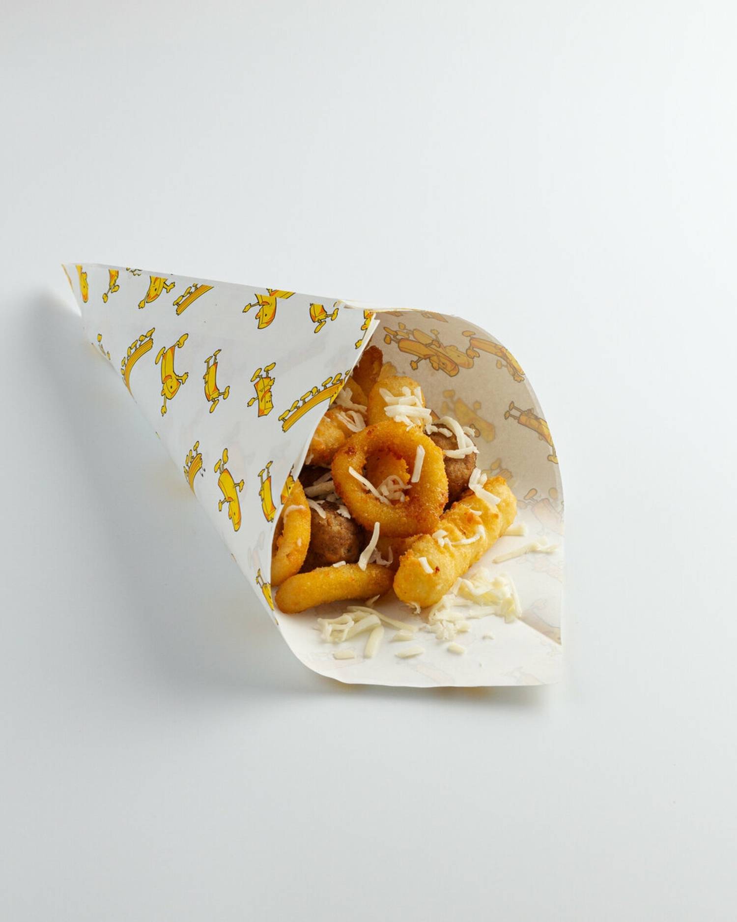 Атмосфера. Место дарит ощущение удобного и быстрого решения для всех, кто хочет быстро перекусить во время длительного шопинга. Яркий, стильный дизайн в фирменных черно-желто-белых цветах бренда с акцентами из светлого дерева четко выделяет корнер на фуд-корте. Лаконичность и чистота оформления создают доверительное впечатление, а одноразовая посуда подчеркивает формат casual-питания.