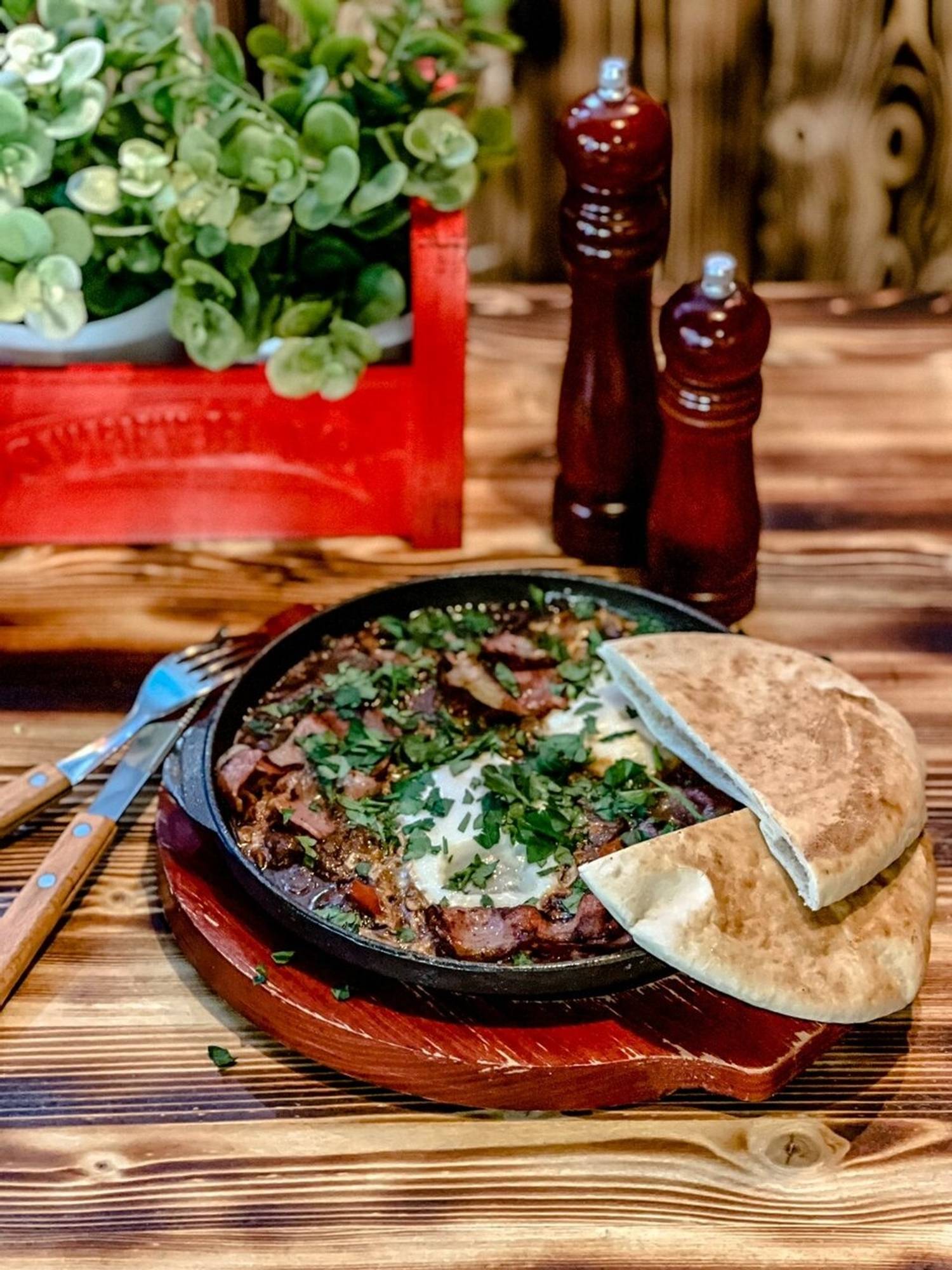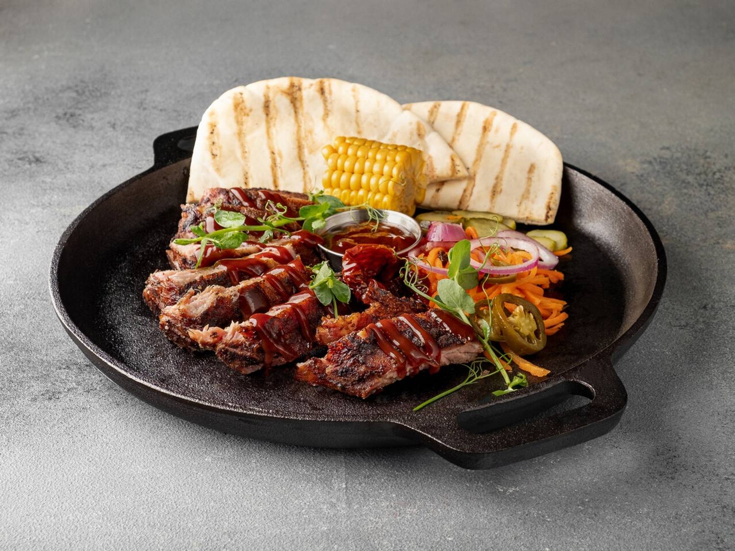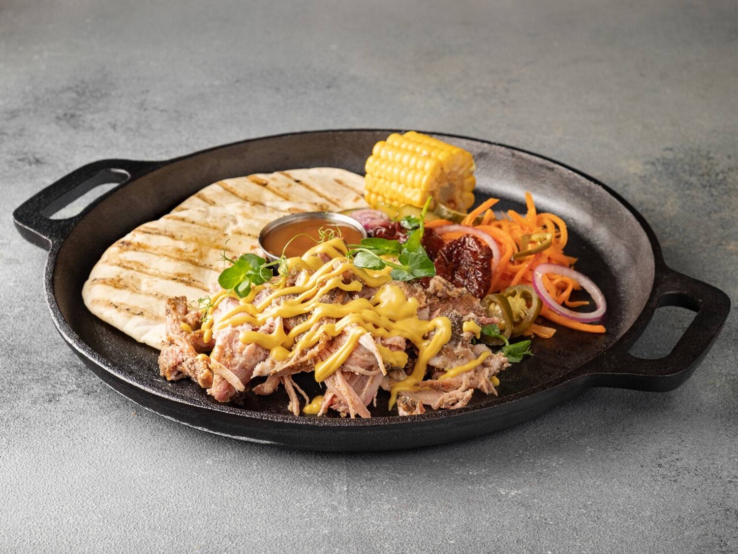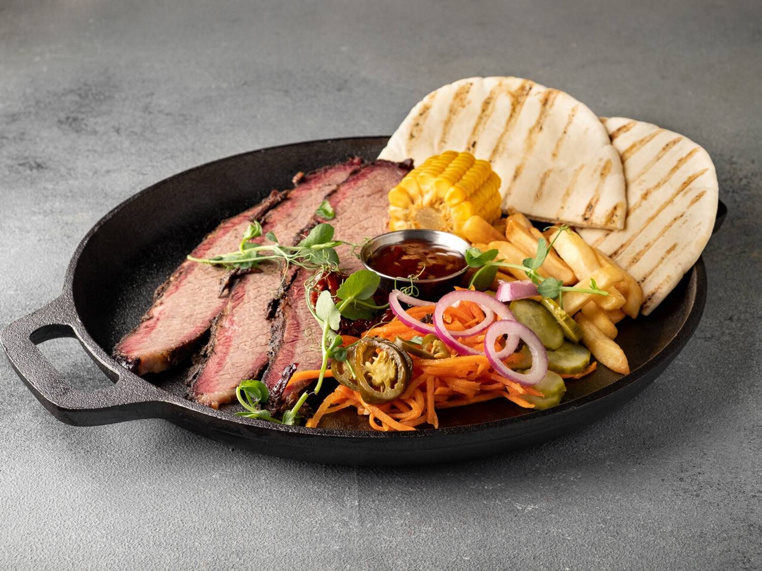 Еда и напитки. Основу меню составляют блюда, приготовленные с использованием смокера или на углях. Главные хиты — томленый в течение 18 часов брискет из мраморной говядины и свиные ребра BBQ Jack Daniels с характерным дымно-алкогольным ароматом. На огне также готовят бургеры, например, «Черри» с вишневым соусом или «Техасский» с беконом, а также шаверму с копченой свининой или курицей. К блюдам предлагают крафтовые эли, кофе и лимонад.