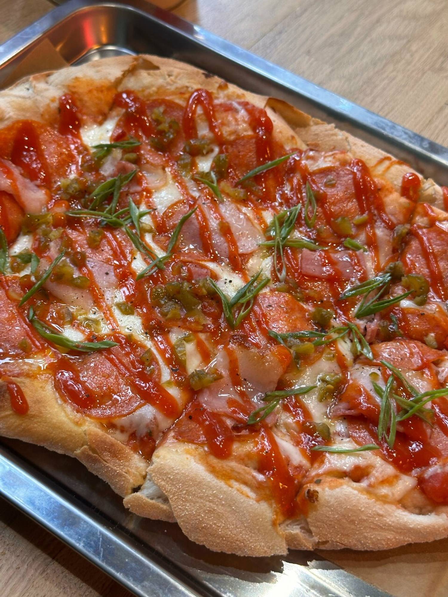 Еда и напитки. В меню — все хиты сети в виде римской пиццы. Плюс есть авторские позиции вроде трюфельной пиццы и страчателлы с воздушной моцареллой и руколой. Есть томатный суп с моцареллой и грибной с трюфельным маслом. Из авторских позиций готовят пиццу с пармой и горгонзолой, индейкой гриль и тоннато. Те, кто любят классические варианты, могут взять супер пепперони. Также есть сырная размера L. Особенно необычно звучит пицца с индейкой и мандаринами. На закуску обычно берут картофель фри, наггетсы, крылья. К ним соусы вроде цезаря, шрирачи и сырного. Порции большие, цены демократичные. На десерт для любителей сладкого есть чизкейк. Из напитков обычно подают лимонады и морс, например, с крыжовником.
